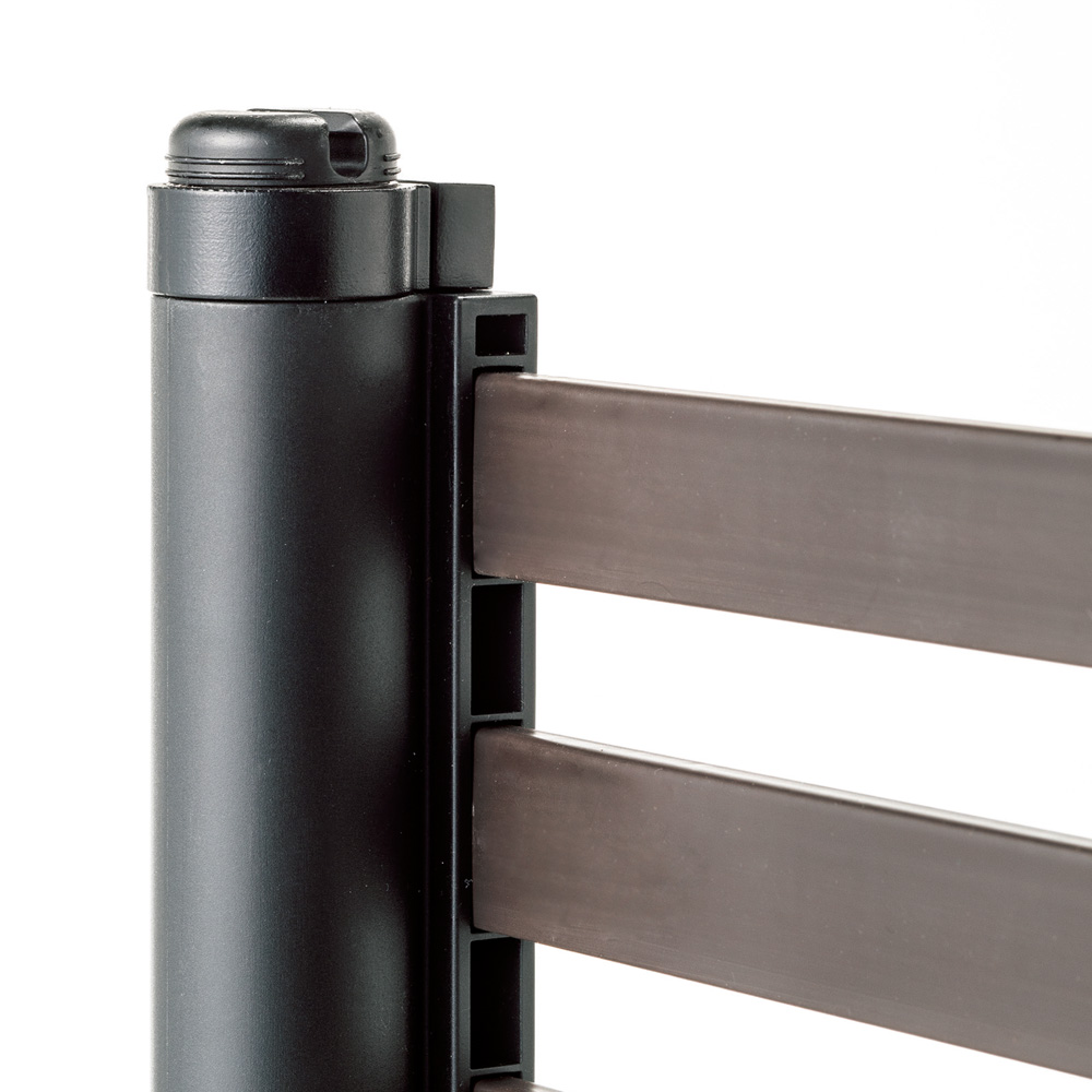 パイプメーカー製でパイプが太く頑丈なので、挿し込むだけの設置でハンギングが可能に。横板一本当たりの耐荷重は最大5キロ(全体10キロ)