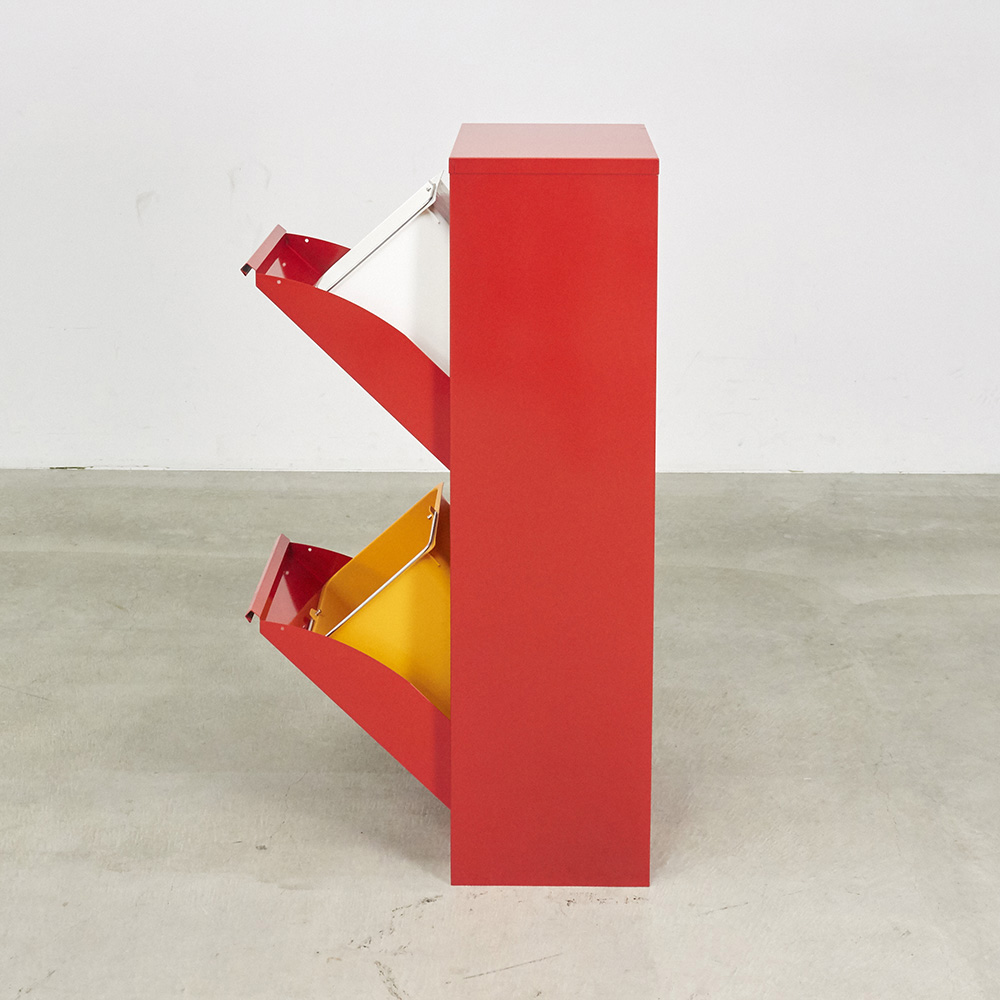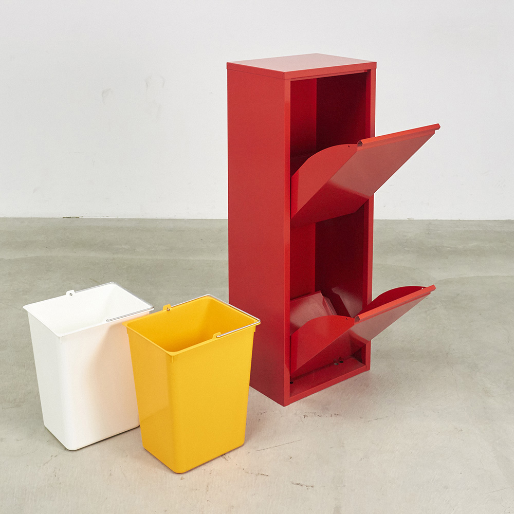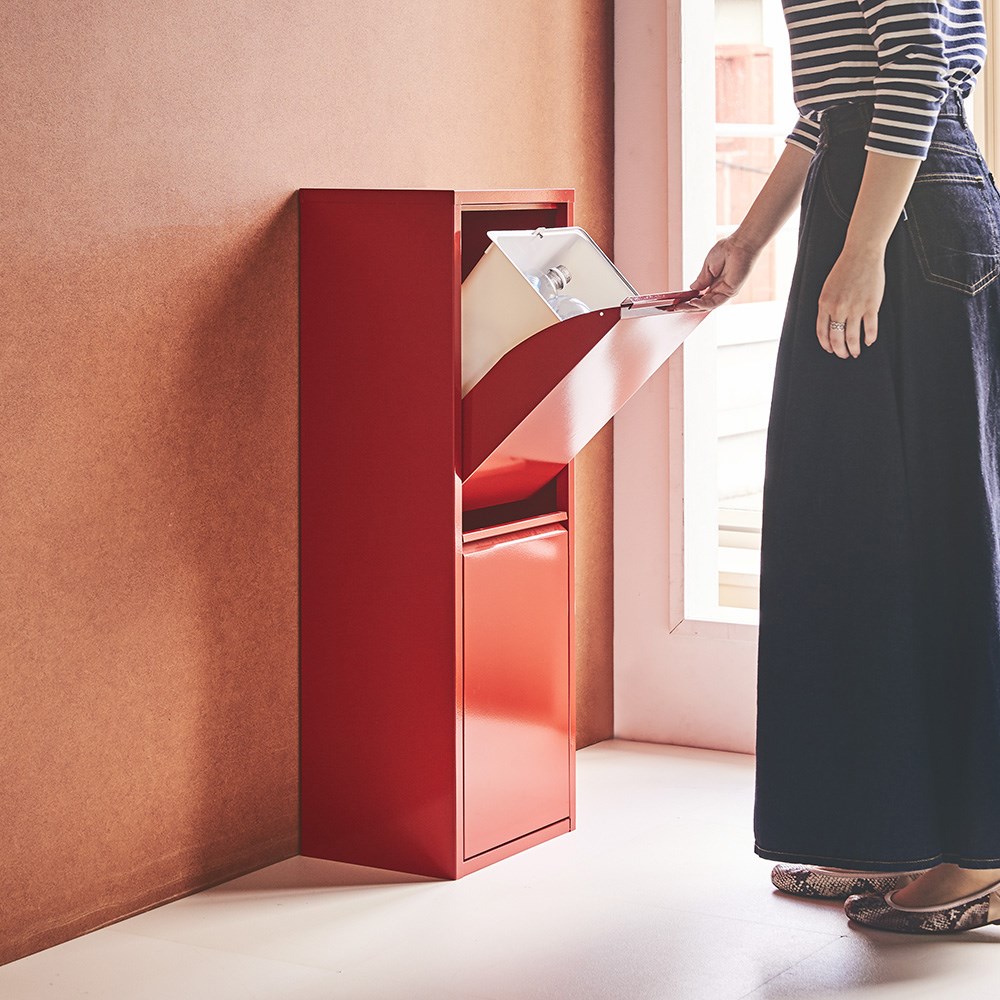 イタリアの雰囲気を感じさせる元気な赤。ポストのような赤色がおしゃれな分別ごみ箱です。グレー