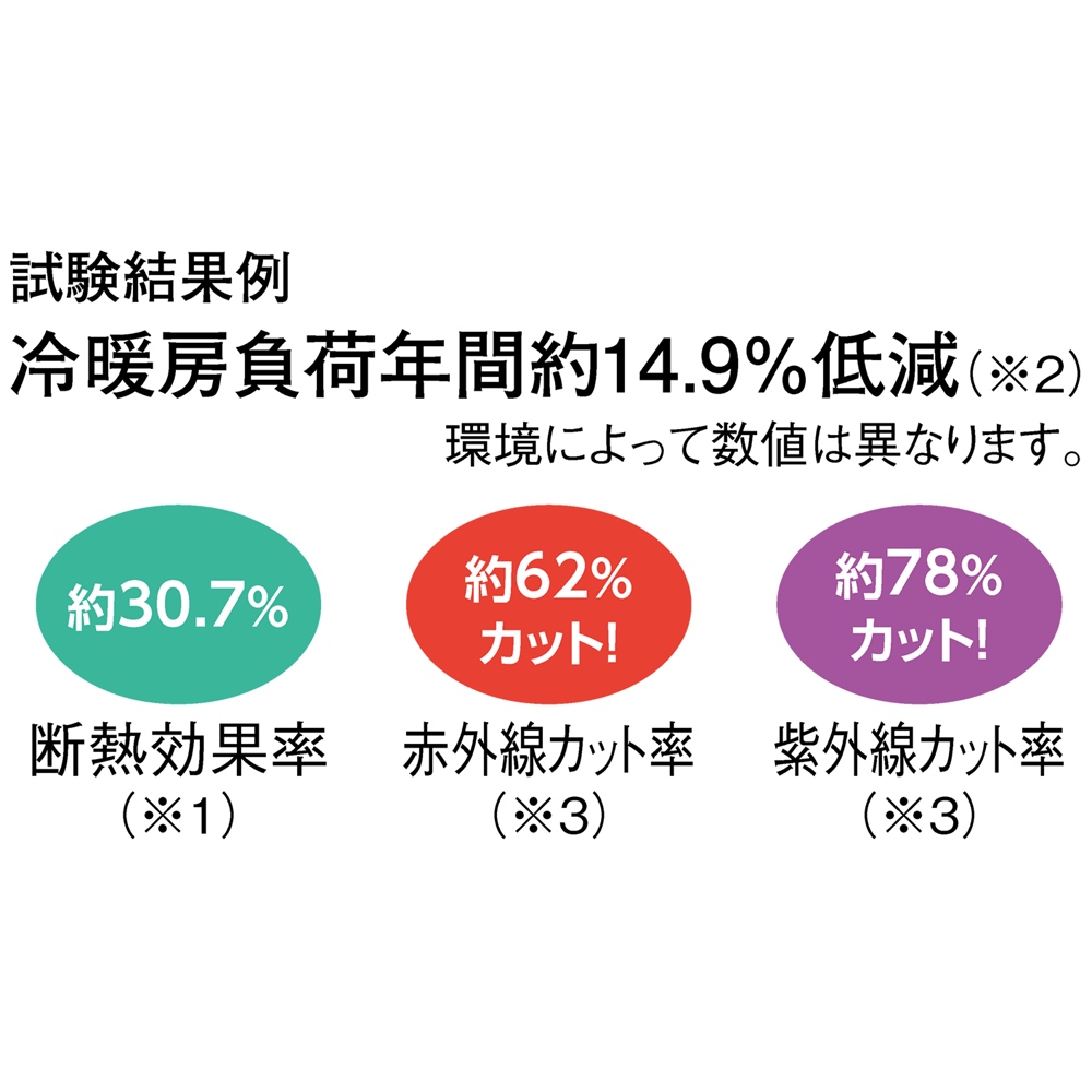 ◆メッシュ地に施した積水ナノコートテクノロジーの「ナノ金属コーティング」が日射熱を53%カットしてくれます(※一財・建材試験センター調べ)。◆紫外線をカットし、室内の温度上昇・家具やお肌の日焼けから守ります。