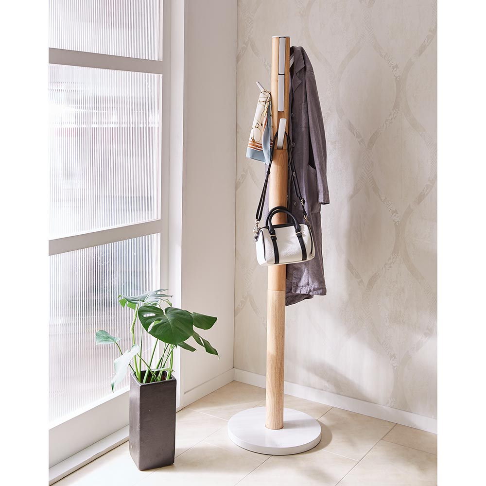 幅の広いメタルベースでしっかり安定。コートハンガーとして、またバッグや帽子ハンガーとしても便利にお使いいただけます。