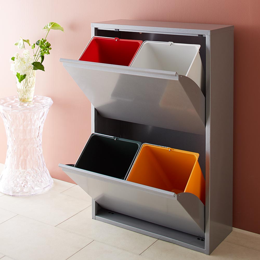 DOTTUS/ドッタス ダストボックス2×2段(4分別ゴミ箱)幅60cm奥行25cm高さ92cm(ホワイト・グレー) キッチン 分別 ダストボックス H92023