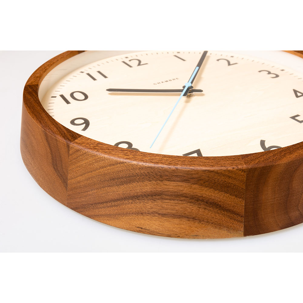 木枠はビーチとCHAMBRE初となるウォルナットの天然木材、文字盤はナラ材を使用、部屋全体に美しい自然が取り込める新しい電波時計です。■嬉しい電波時計機能