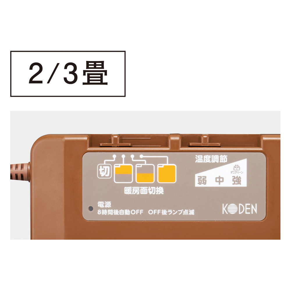 ●温度調節機能 ●ダニ対策機能 ●8時間OFFタイマー付 ●暖房面切替機能
