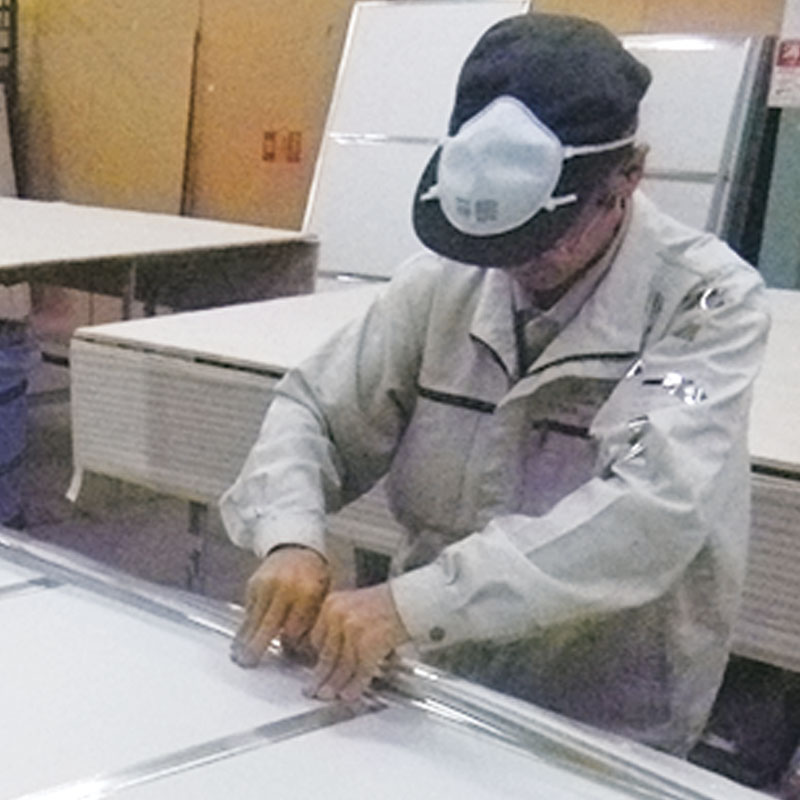 ■素材:鏡面…ポリエステルフィルム裏面アルミ蒸着、芯材…硬質ウレタン、エッジ…発泡PS(ポリエスチレン)他