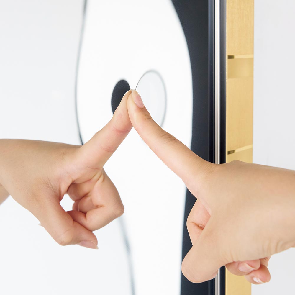 高性能フィルム採用の明るくクリアな映り。「軽量で割れない」機能的なミラーを、フレームでモダンに。