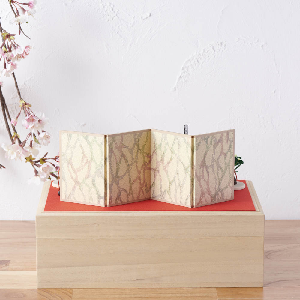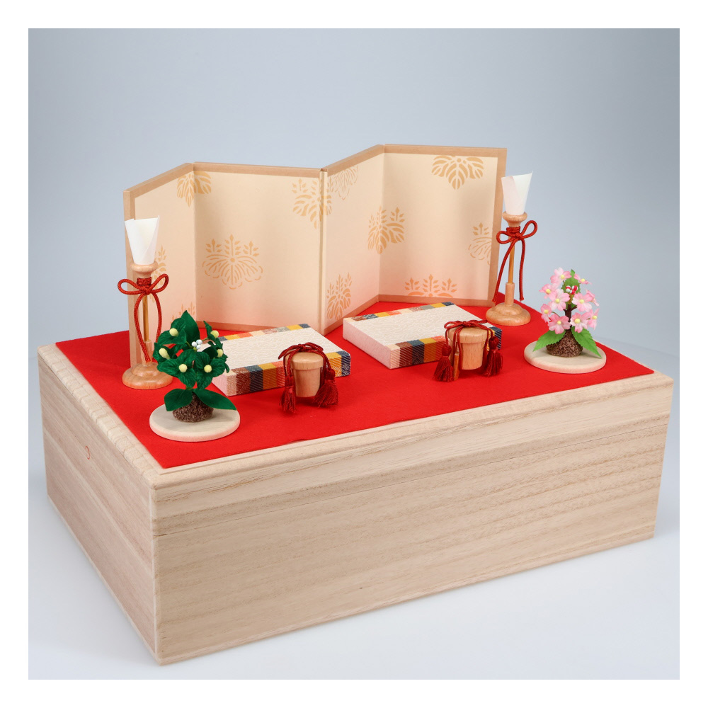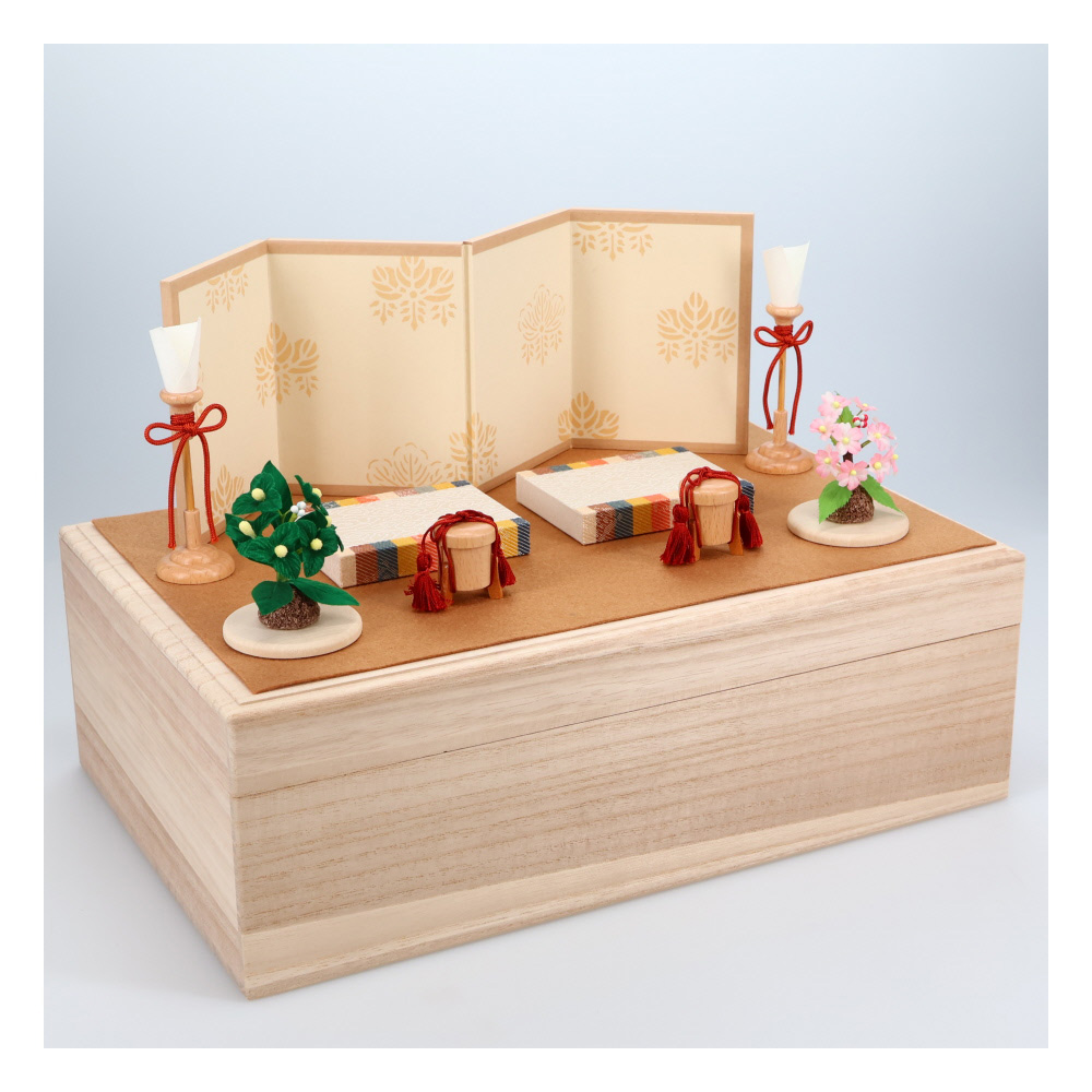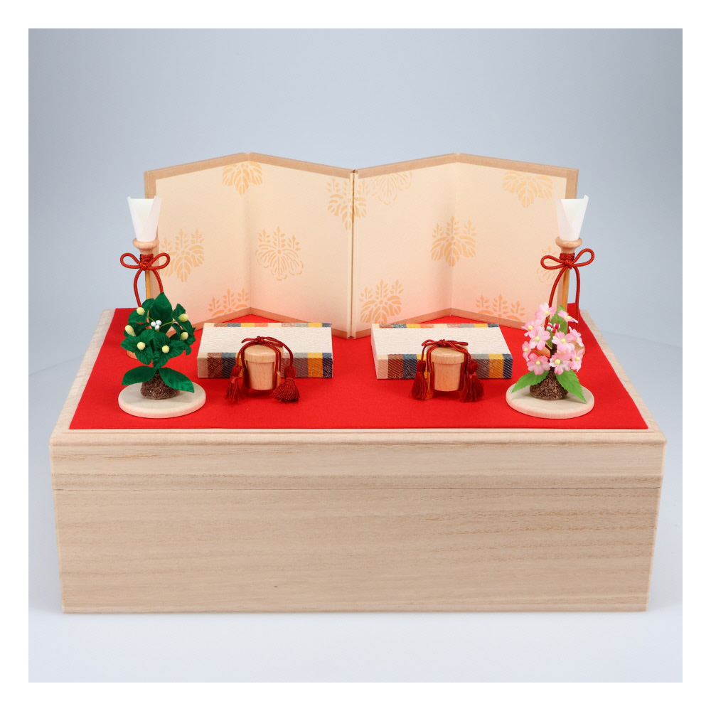 ■セット内容・付属品:燭台2・貝桶2・親王台2・屏風・桜・橘・桐箱・毛氈・作札