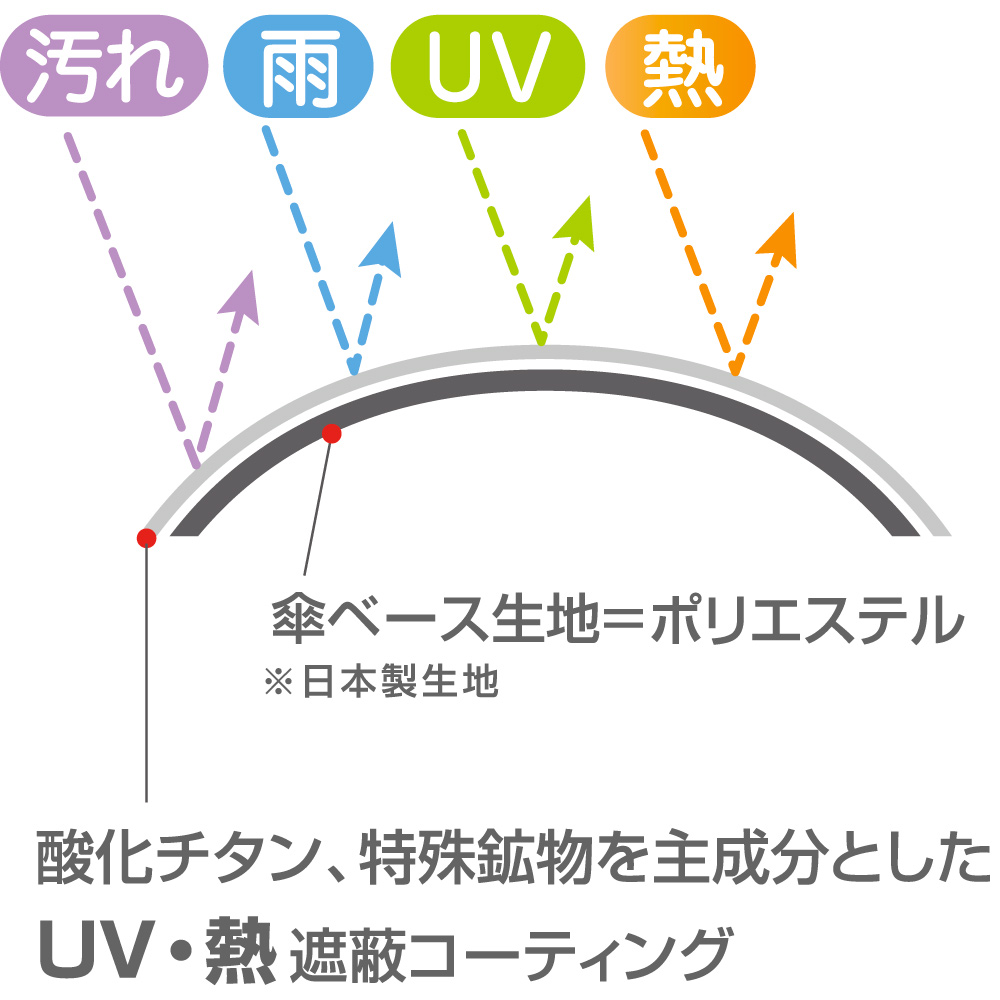 ■生地…ポリエステル 親骨…グラスファイバー、中棒…アルミニウム、持ち手…合皮