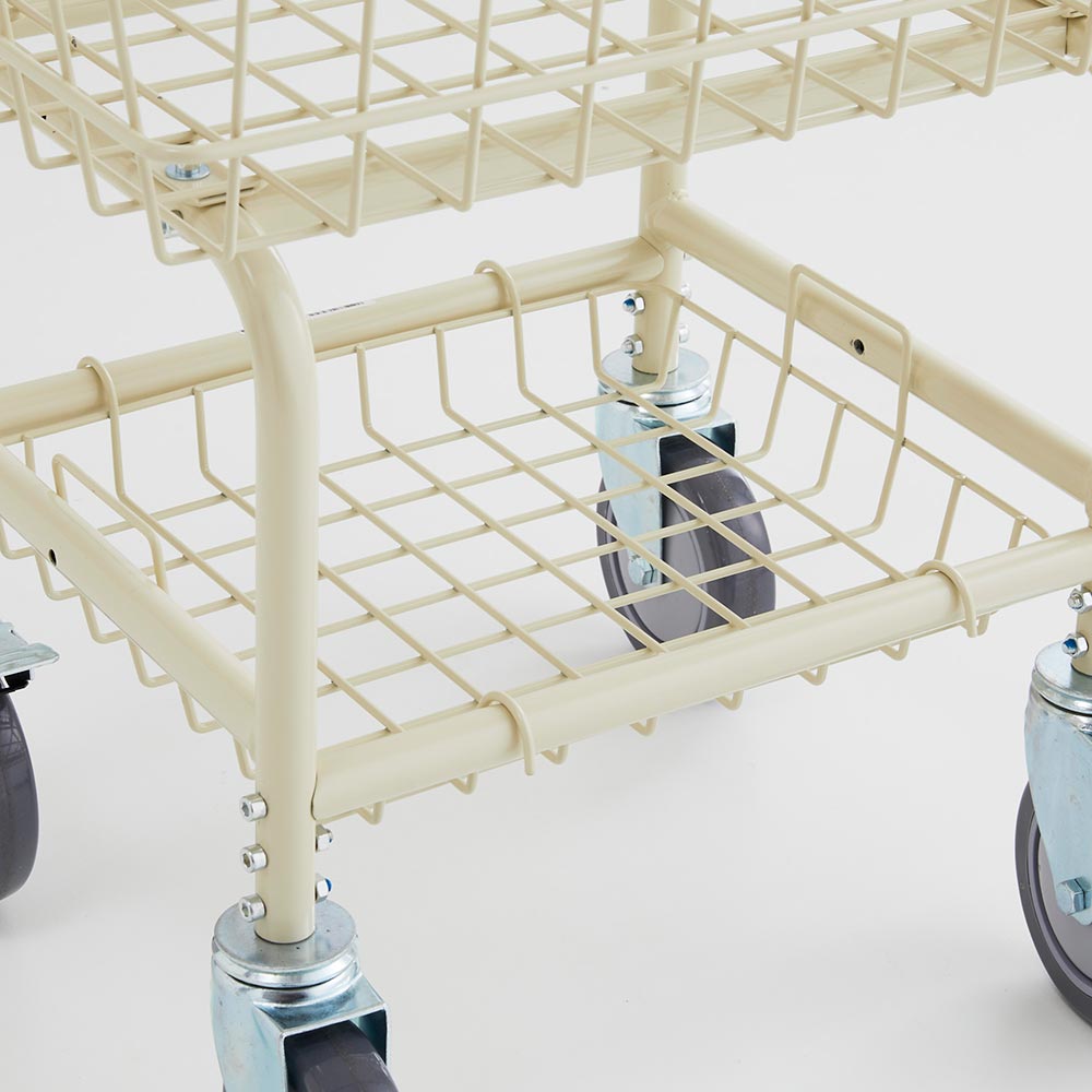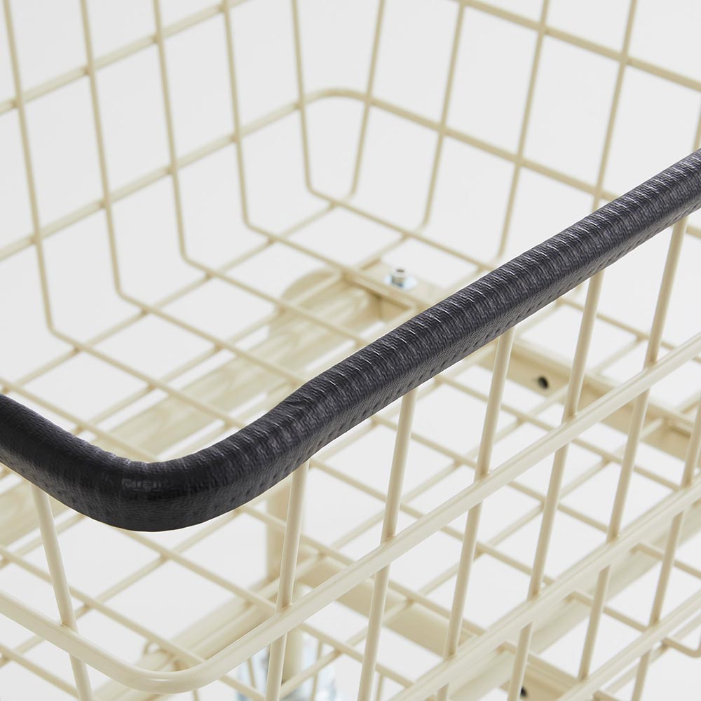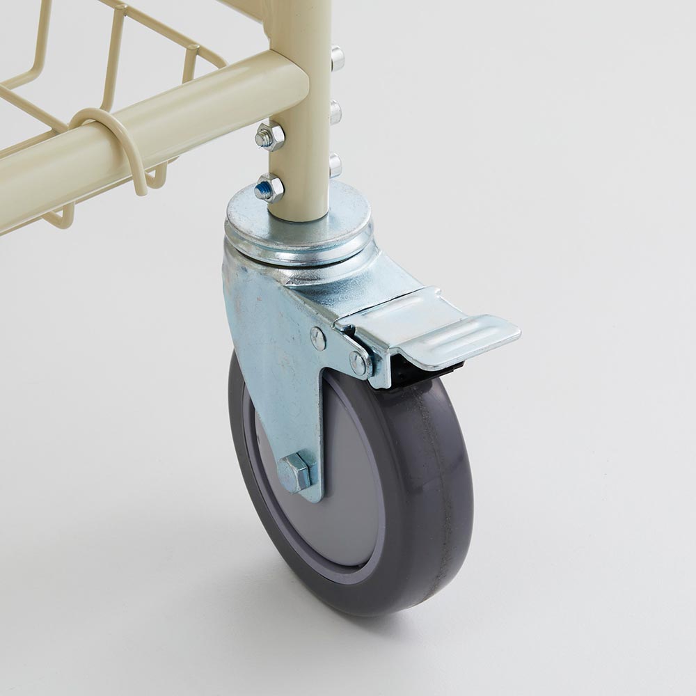 キャスターは丈夫なつくりで滑りもなめらか、バスケットの淵にもクッションがついているので壁擦れも防げます。