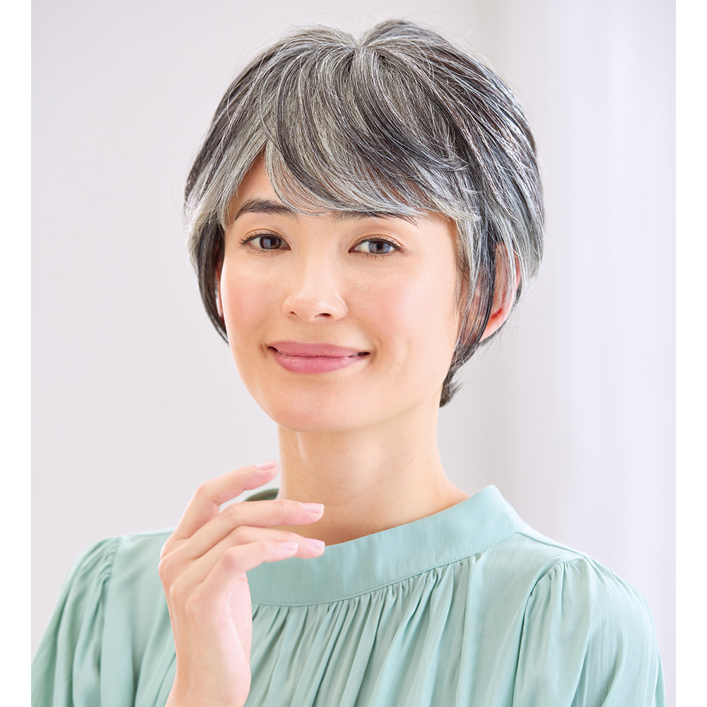 自毛に近いナチュラルなカラーや、シルバーヘアを美しく楽しむホワイトミックスも人気。 ウィッグネットは伸縮性があり、着脱が楽。