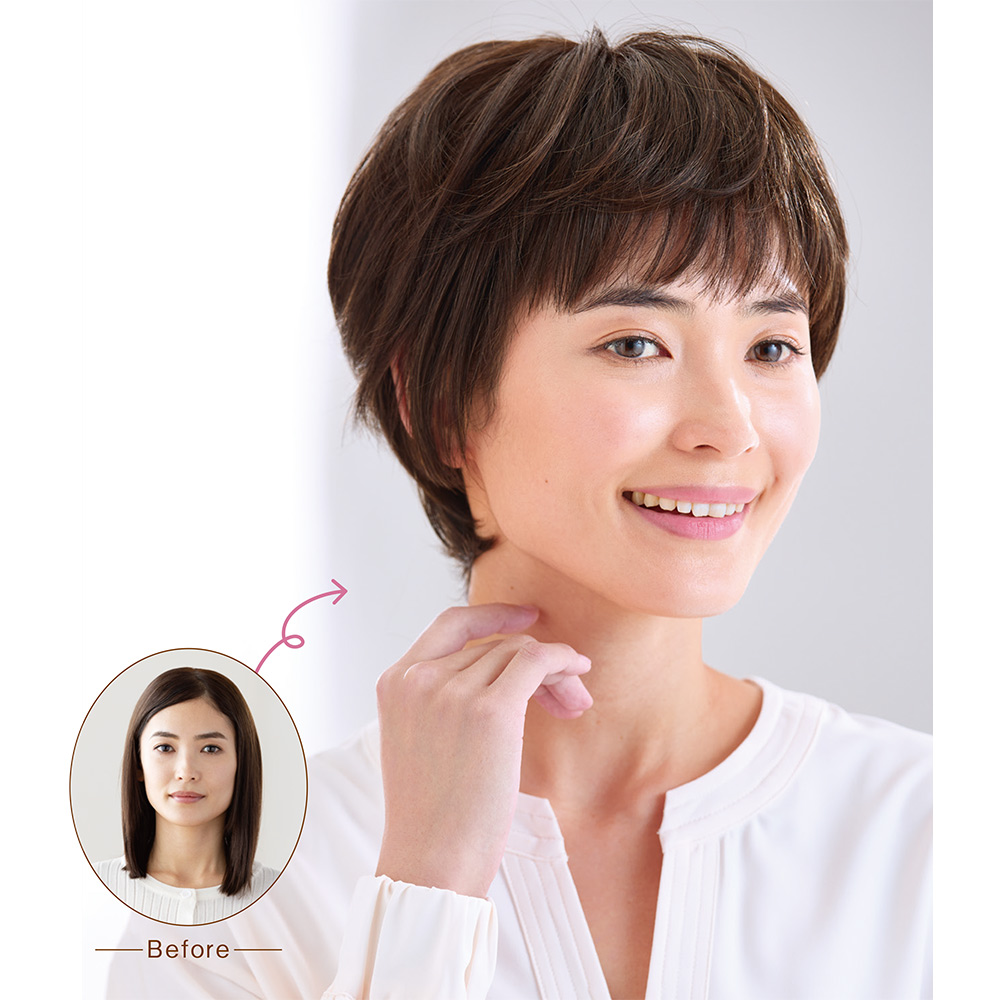 ショートスタイルだからマフラーやタートルネックでも快適、簡単イメージチェンジ!