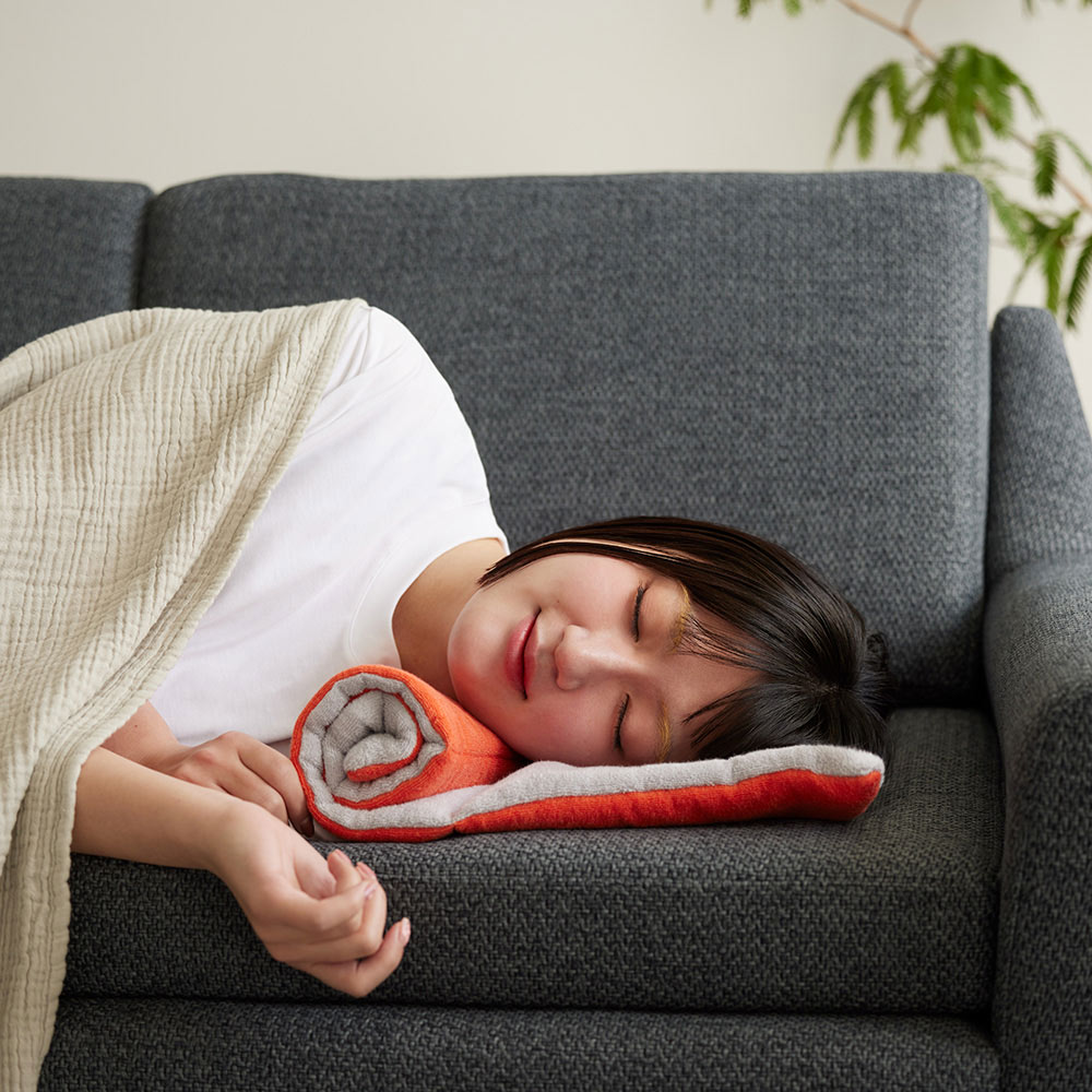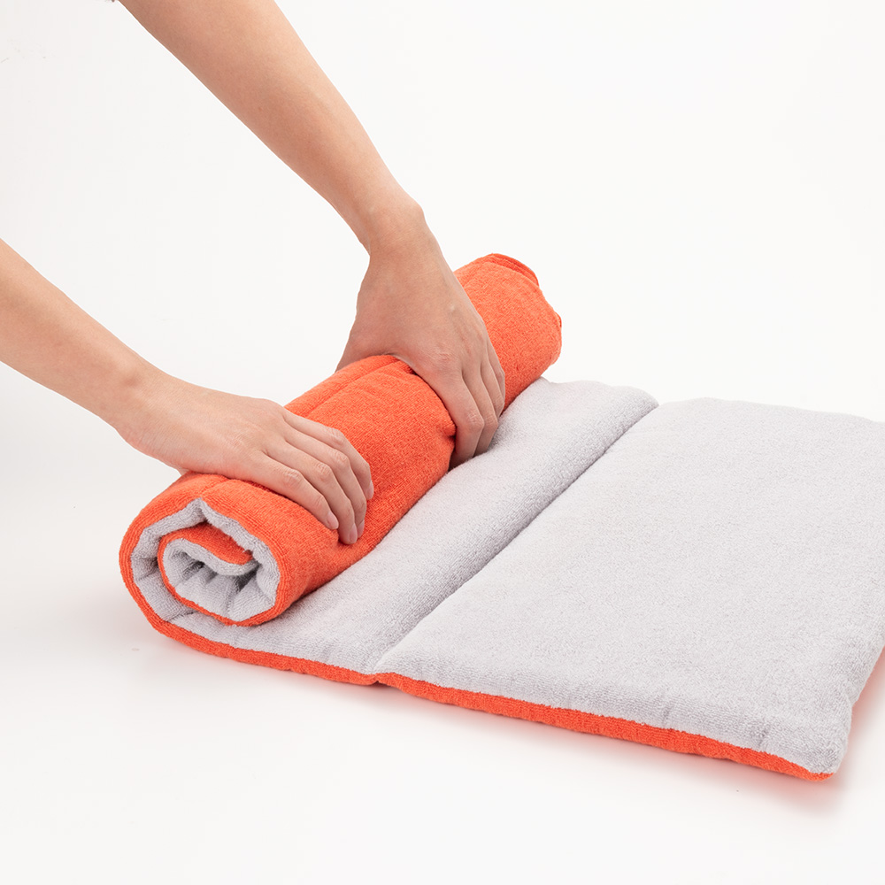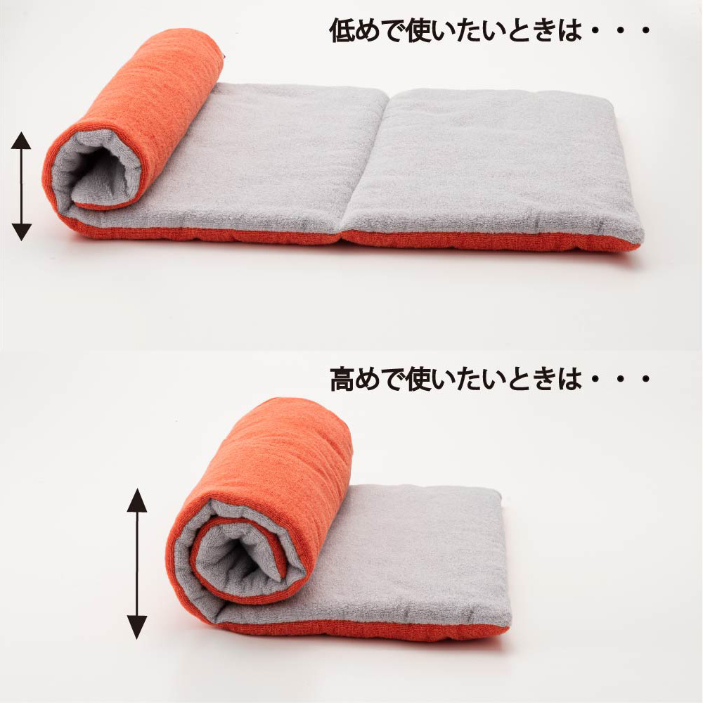 広げれば薄手の?枚に。だから丸めたり、折りたたんだりして、自分好みの高さや形に調整できます。