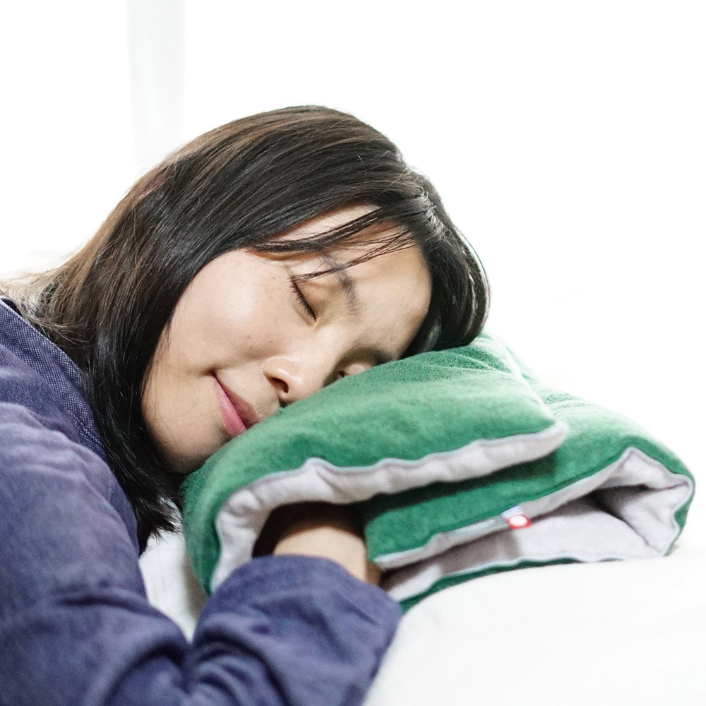 三つ折りにして中に手を入れれば、デスクでの仮眠にも便利。