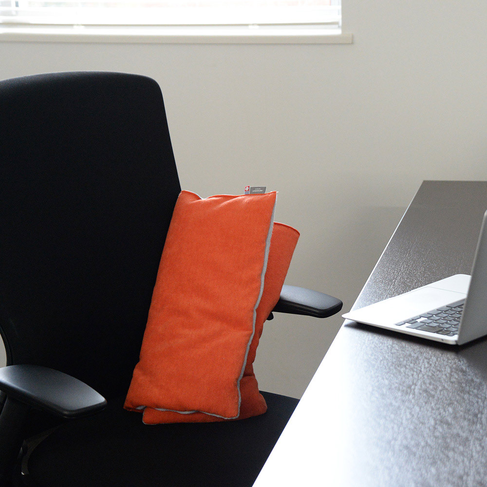 デスクまわりで背もたれに挟んだり、ヘッドレスト代わりにしたり。丸めて持ち運ぶのも簡単だから、アウトドアなど外にも気軽に持ち出せます。