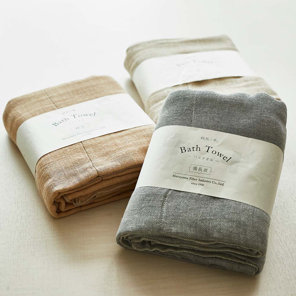 古の虫除けとして寝床を囲むように吊ってあった布が、蚊帳。奈良の老舗メーカーが、粗く織られた通気性の良い伝統的な蚊帳織り技術を用いて、現代人のニーズに応えた機能性の高い良質なタオル類に仕立てたブランド。商品画像の説明
