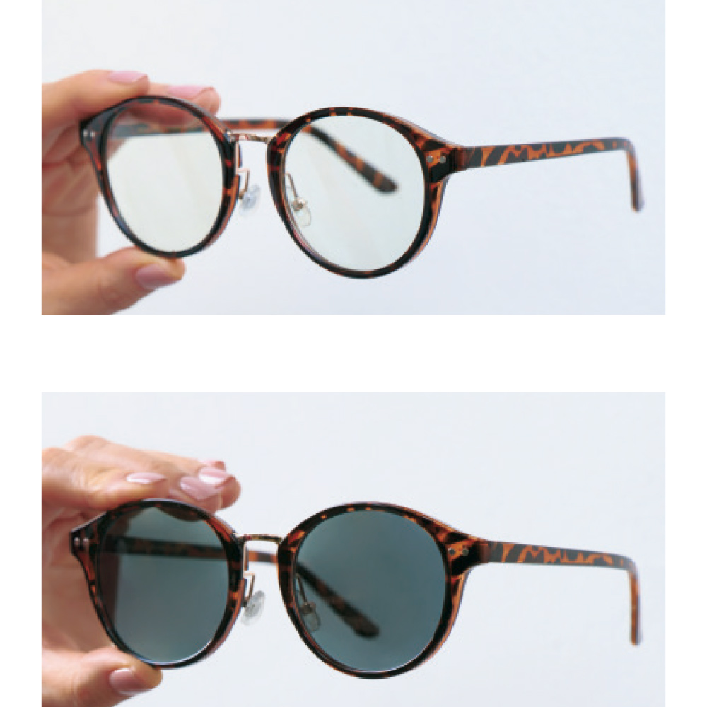 (ア)デミ 紫外線に当たるとクリアレンズの色が変化し、UVからしっかり瞳をガードします。クリアな時はブルーライトのダメージを軽減。