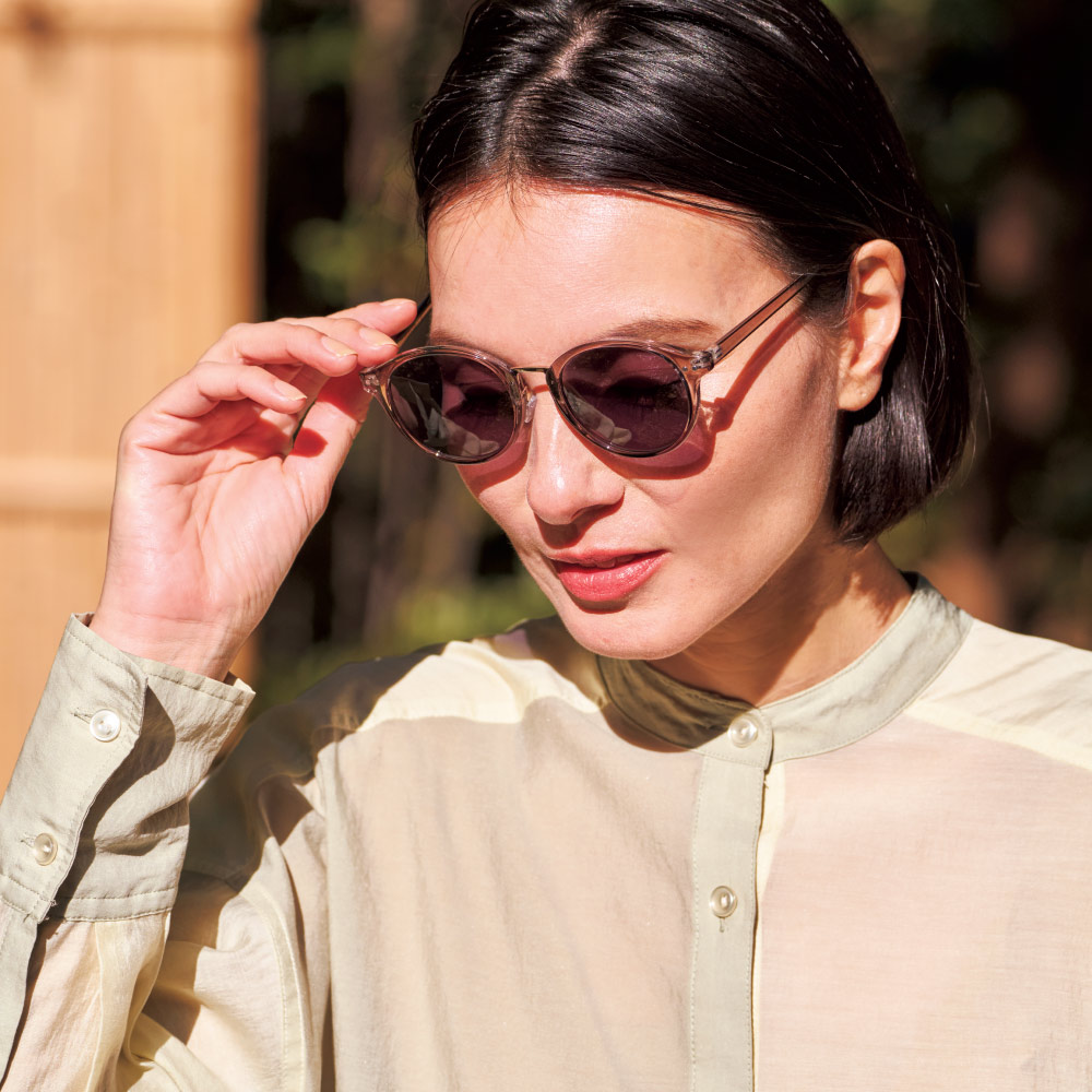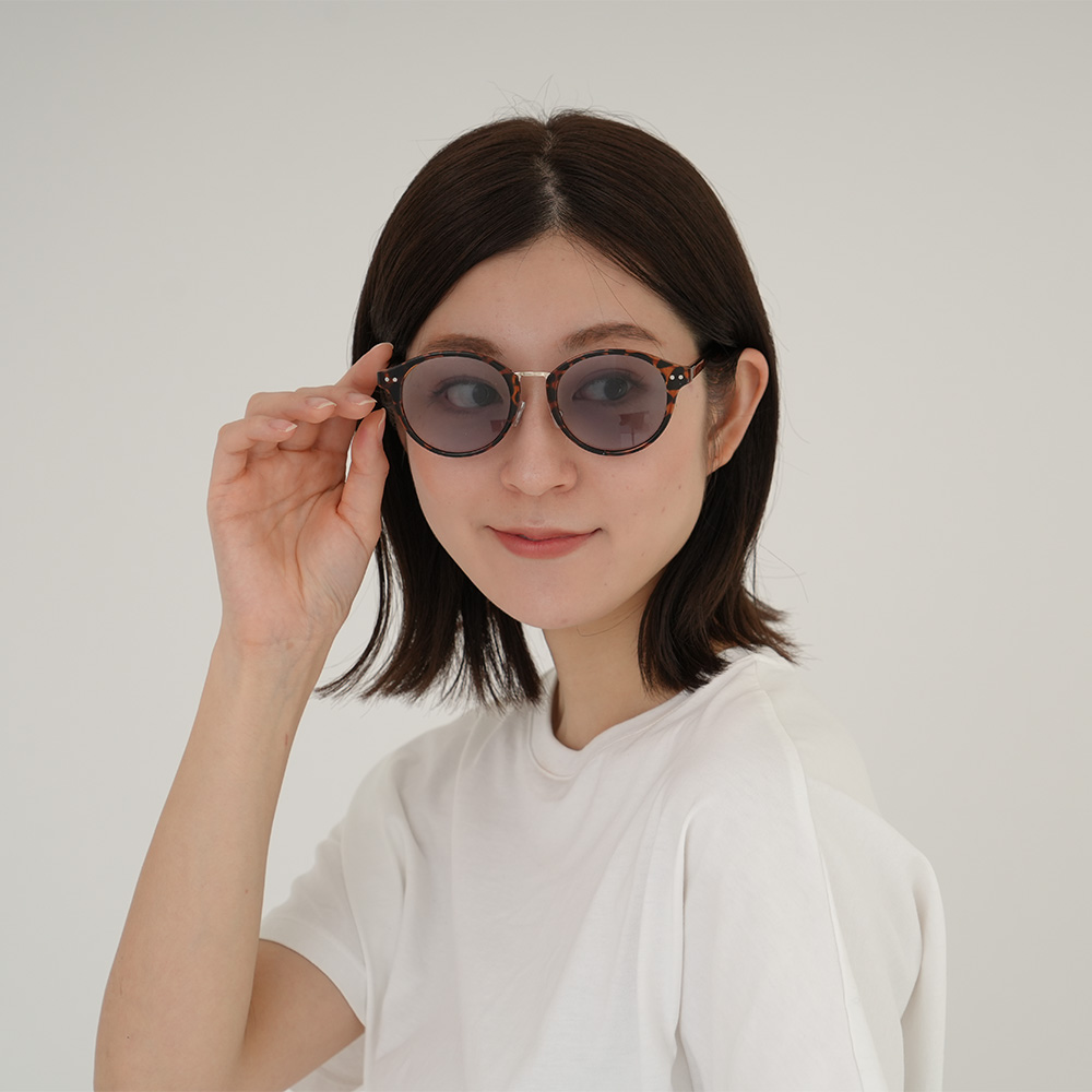 丸みのあるボストンフォルムは柔らかい印象で、さまざまなシーンやファッションに合わせやすいデザイン。可動式ノーズパッド付きで、日本人の顔にもフィットしやすく調整可能です。UV・ブルーライト対策も万全