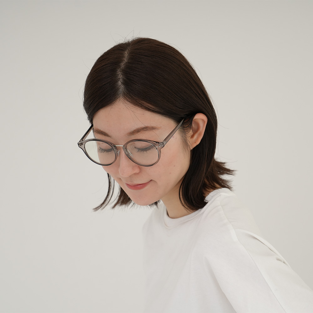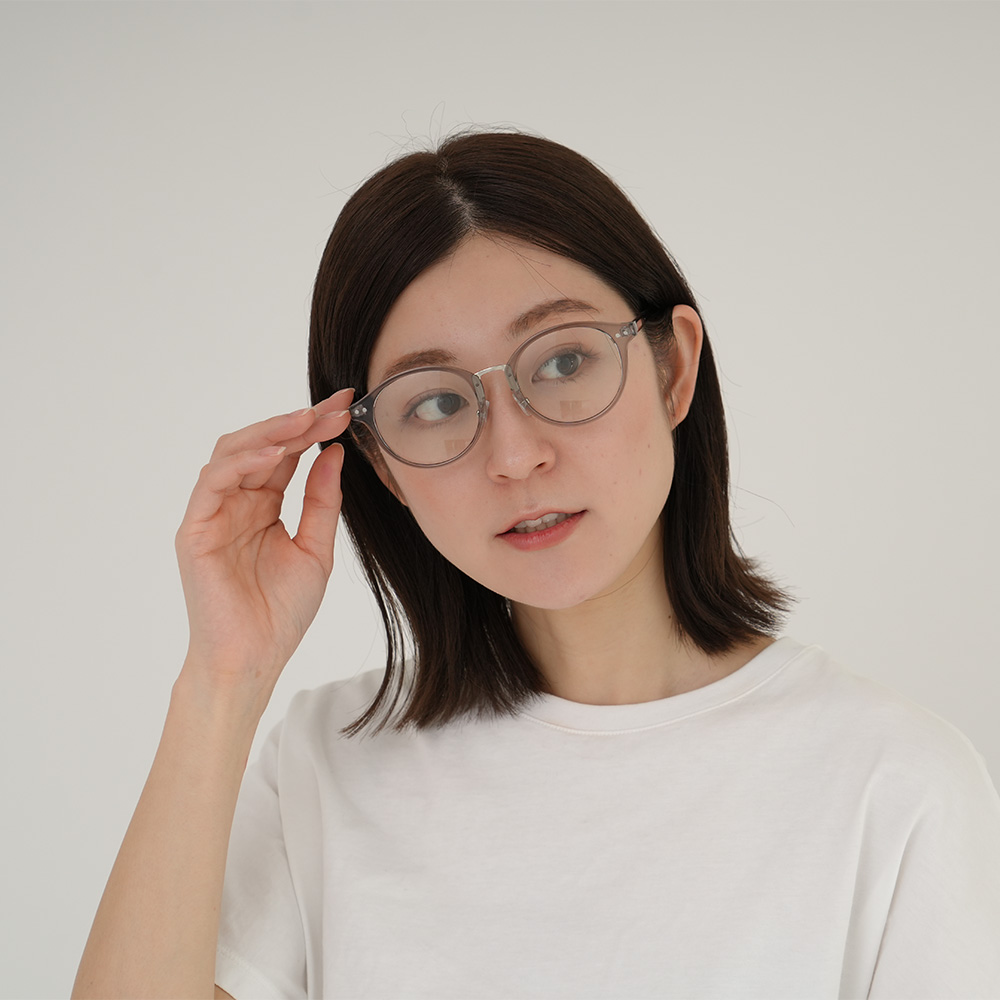 (イ)クリアグレー 人間工学に基づき日本人の骨格に合わせたフレーム設計で、人気のボストンタイプは飽きのこないデザイン。