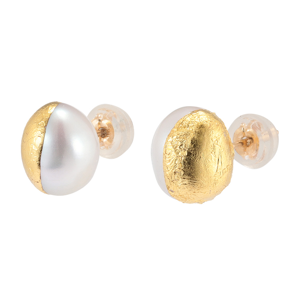 ■素材:淡水真珠1個(約9×8mm/ホワイト系/バロック(不定形))、金箔(22.7K)、ポスト・キャッチ…K10