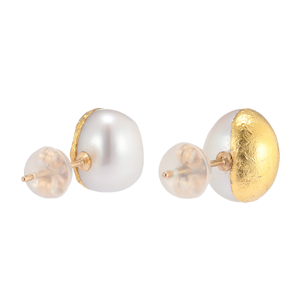 日本の伝統技法でパールに金箔をあしらいました。有機的なフォルムに柔らかな輝きが見事にマッチ。