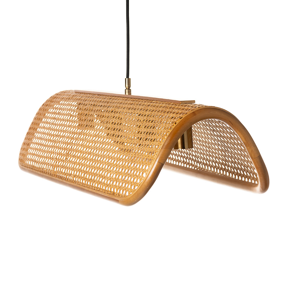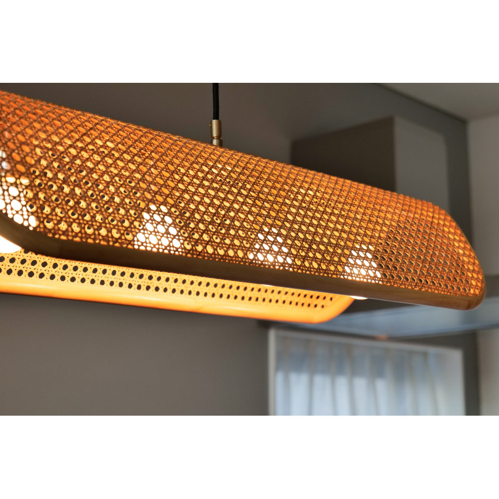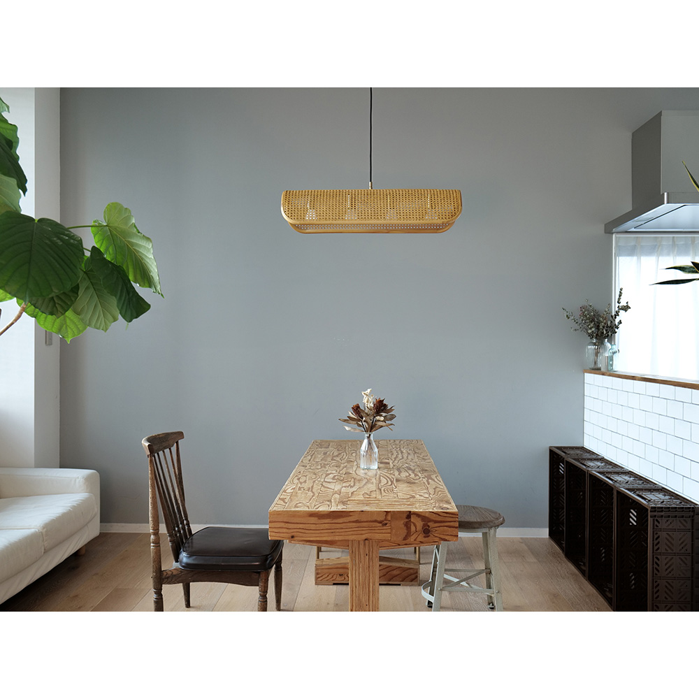 木材の滑らかな曲線と籐編みの組み合わせが存在感を放つラタンランプ。天然の籐を使用し、ひとつひとつ手編みで作られたシェードは、編み目から漏れる柔らかな光が、空間を心地良く照らします。籐素材の色味そのままのナチュラルと、モダンなブラックの2色から選べます。