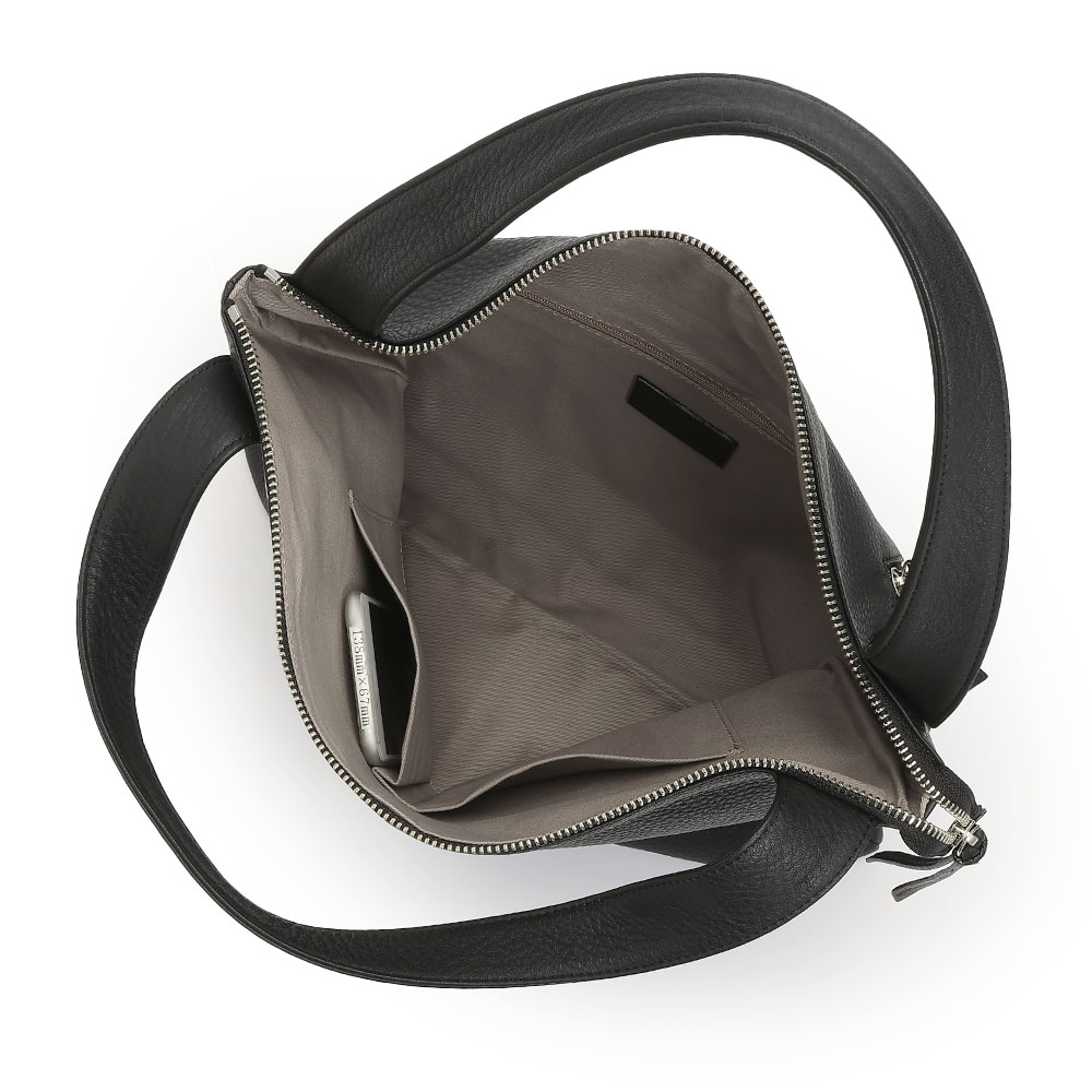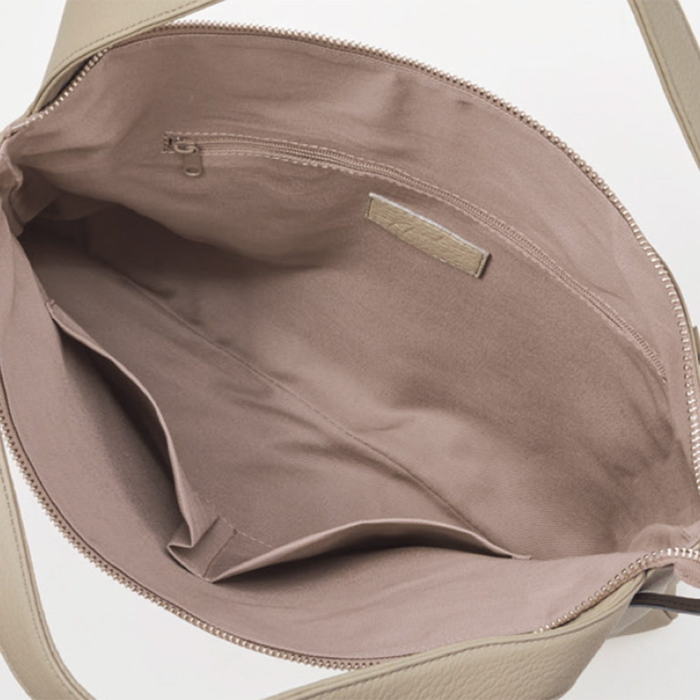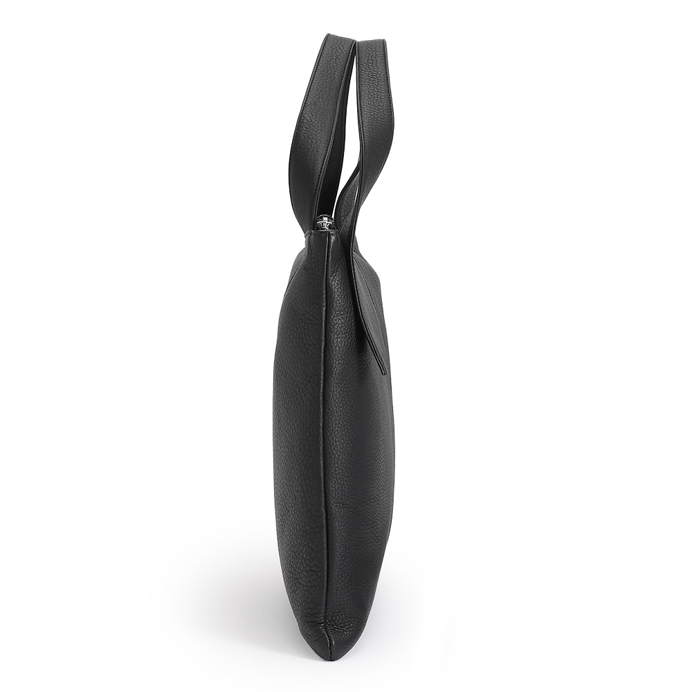 時間をかけて原皮をギュッと収縮させることで自然なシボと膨らみが生まれる贅沢な革が本シュリンクレザー。くたっと柔らかな上質革でA4サイズが入る薄マチのバッグを仕立てました。商品画像の説明