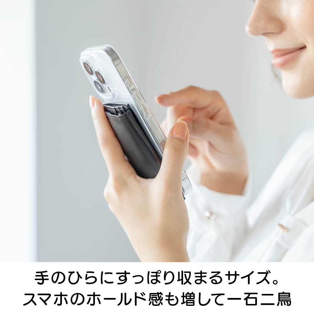 手のひらにすっぽり収まるサイズ。スマホのホールド感も増して一石二鳥