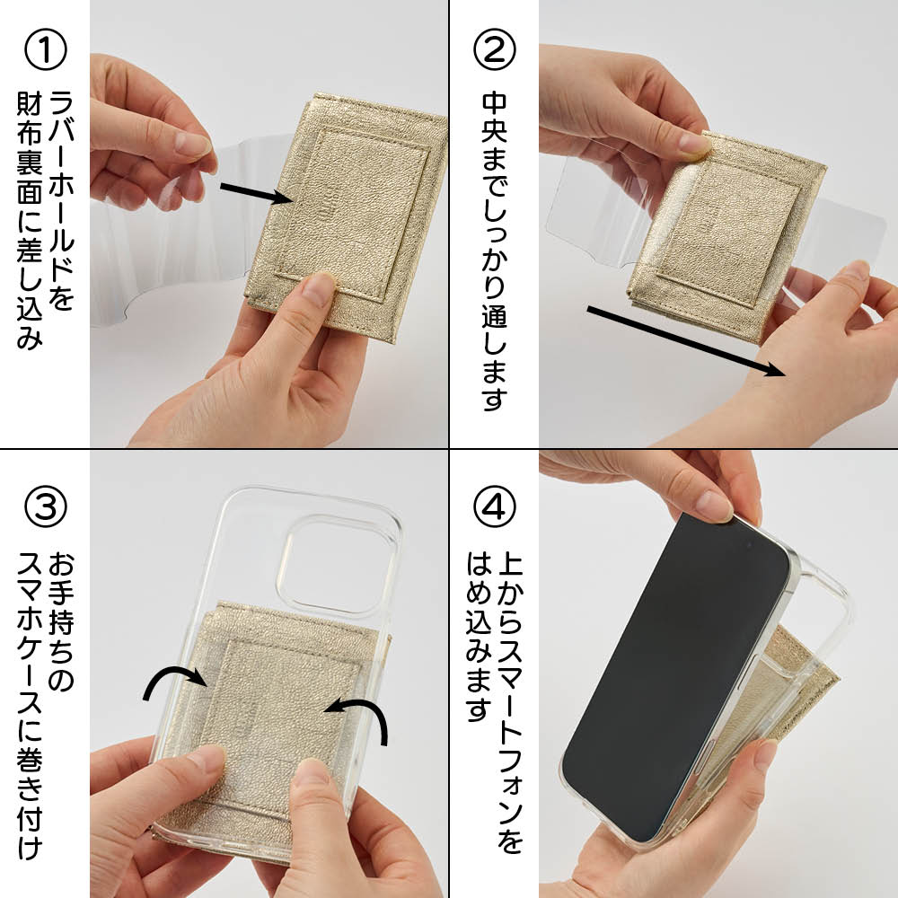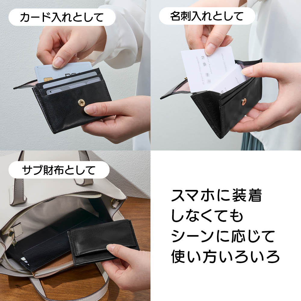 ラバーホールドは着脱可能なので、スマホケースに装着せず単体でもお使いいただけます。名刺入れやカードケース、家計を分けるサブ財布としてなど幅広く活躍。