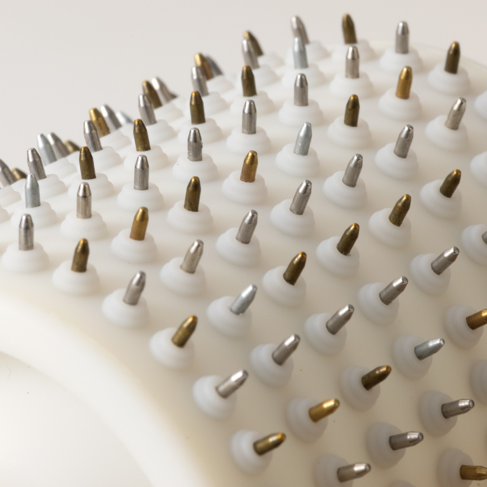 クッション性に優れた医療用シリコーンに、272本の金属針を独自バランスで配置したニードルローラー。転がしたり押して圧をかけることで、摩擦や痛みを軽減しながら効率的に刺激。全身をすっきり軽やかにリフレッシュ。理想のラインづくりにも効果的です。商品画像の説明