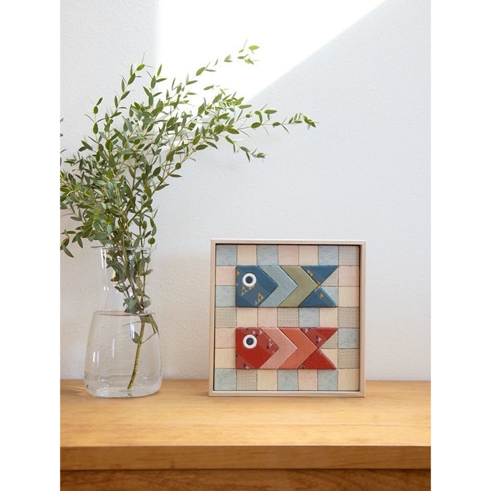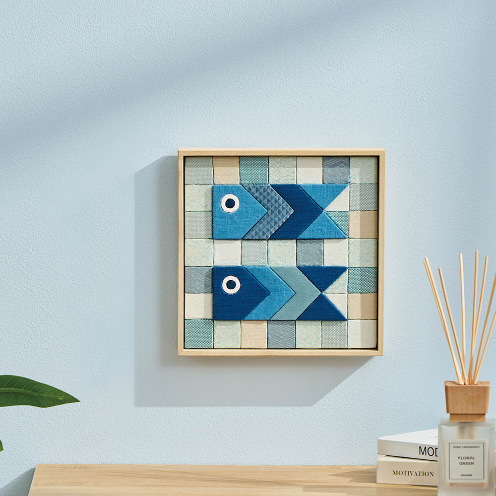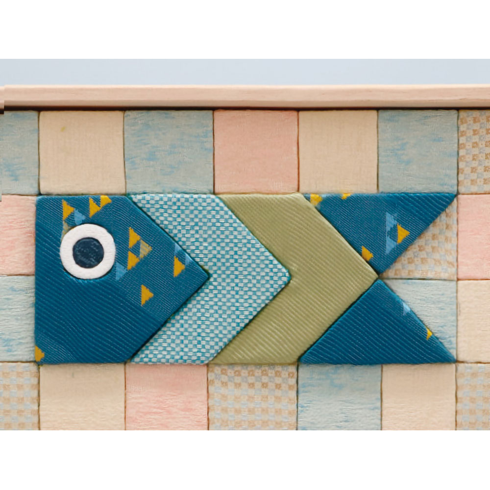 鯉のぼりモチーフの木目込細工を、シンプルな桐製フレームに収めたアートパネル。
