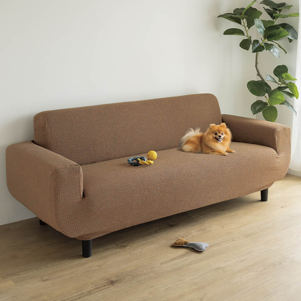 愛犬の爪による引っかき傷がつきにくいソファカバーです。はっ水加工と抗菌防臭加工で洗濯機で洗えて衛生的。抜け毛が目立ちにくく、無地調ながら表情豊かな生地感がどんなインテリアにもマッチします。(写真は3人掛用)