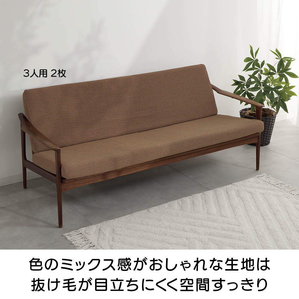 多色糸をミックスして織り上げたシャリ感のある生地は、ペットの抜け毛が目立ちにくいのもポイント。光の当たり具合や見る角度によって豊かな表情を見せ、インテリアに自然に溶け込みます。