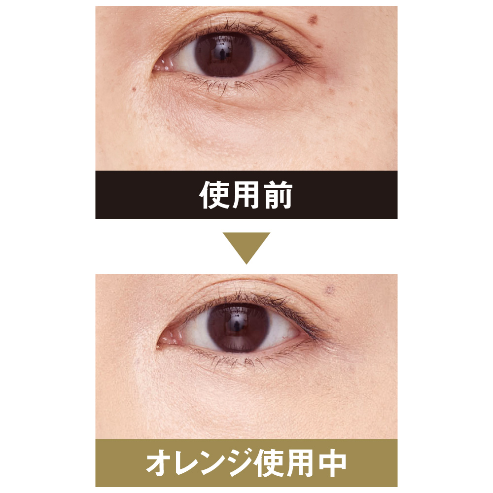 クマ用 使用前 オレンジ使用中 青ぐまや濃いくまたるみラインのカバー ※メイクアップ効果。仕上がりには個人差があります。