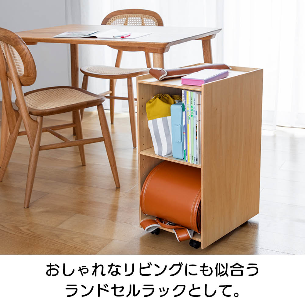 下段をランドセルラックとして使い、上段には学用品などを収納。天板も使って必要なものをセットしておけば、リビングで勉強する時も散らからず快適!性別や年齢を問わず、長く使えます。
