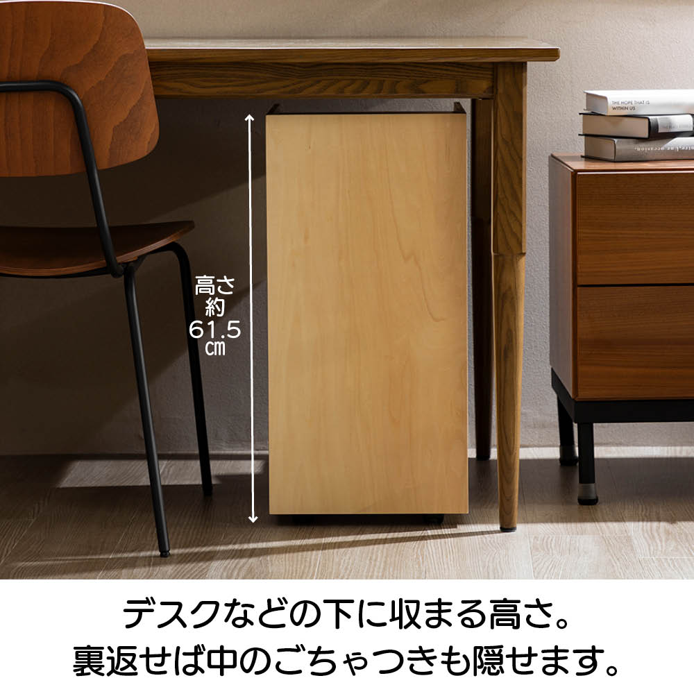 バッグを出し入れしない時は、くるっと裏返して置くのがおすすめ。中がごちゃごちゃしていても隠せるので、お部屋をすっきり見せられます。高さは約61.5cmで、デスクやダイニングテーブルの下にも収納可能。