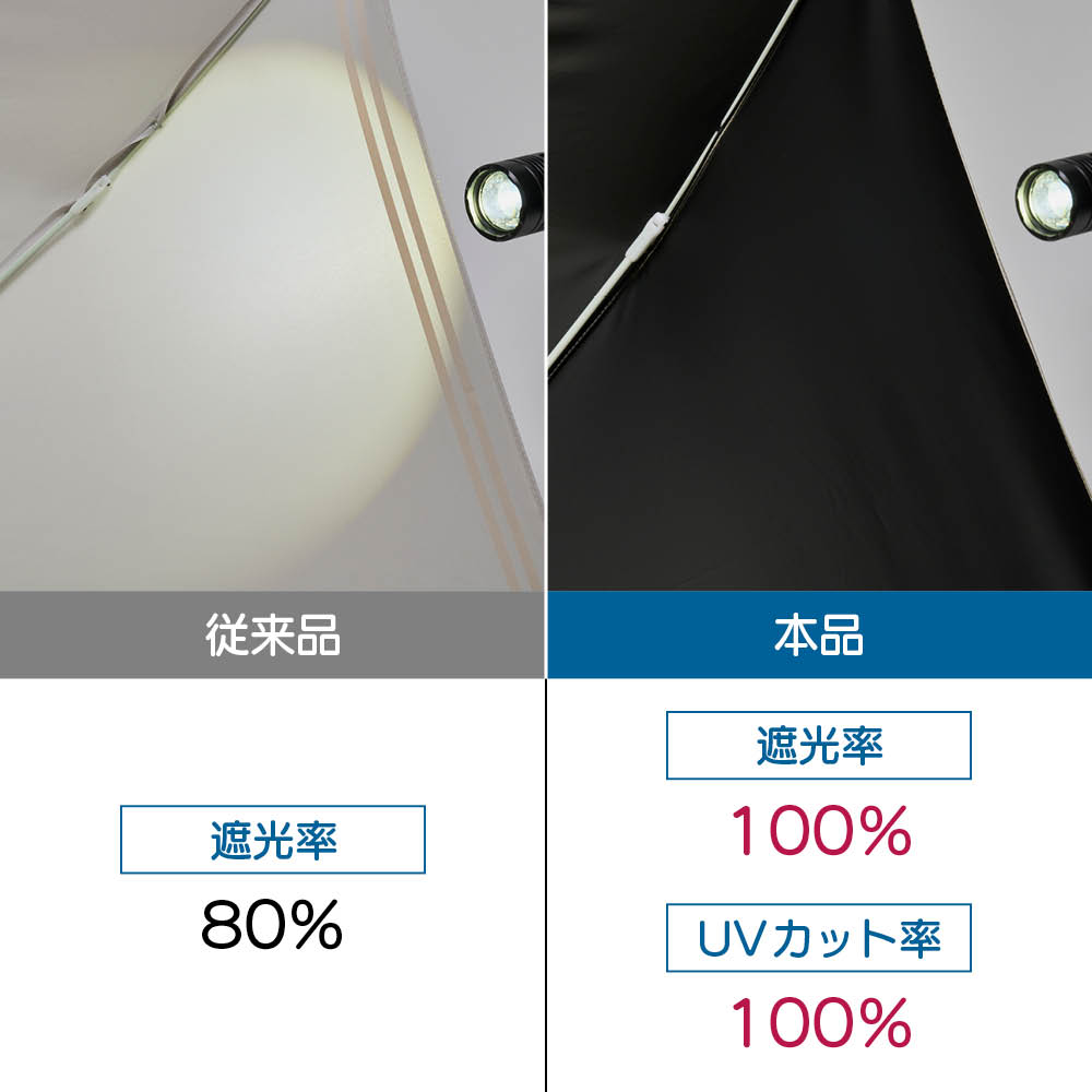遮光率100%・UVカット率100%(UPF50+)※1でギラギラの日差しもしっかりブロックします