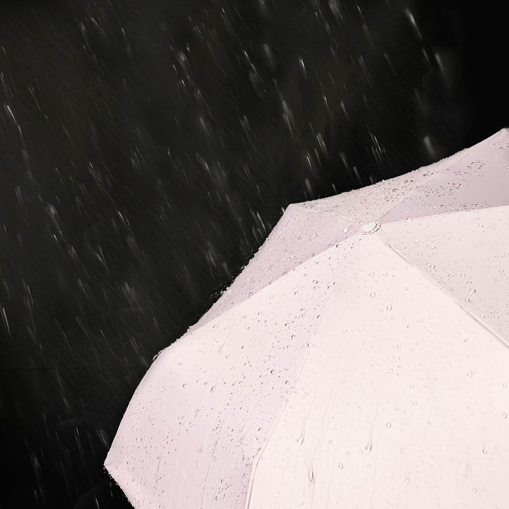 高い撥水性を備えた晴雨兼用傘なので、本格的な雨もしっかり弾きます。天候の変わりやすい季節や、ゲリラ豪雨が不安な夏場も、365日この1本がバッグに入っているだけで安心感が違います。