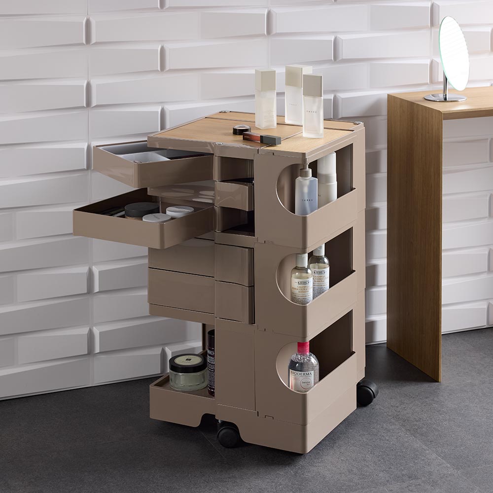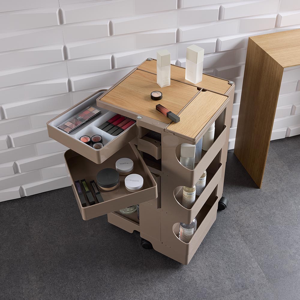 ボビーワゴンの天板に載せるだけでお使い頂けます。天板がフラットになることで、デスク周りやキッチン、リビングでの用途が格段に拡がります。デスク周りの小物や書類を整理する収納アイテムとして使ったり、キッチンの調味料や調理器具の収納にも◎ボビーワゴン(Boby Wagon)とは