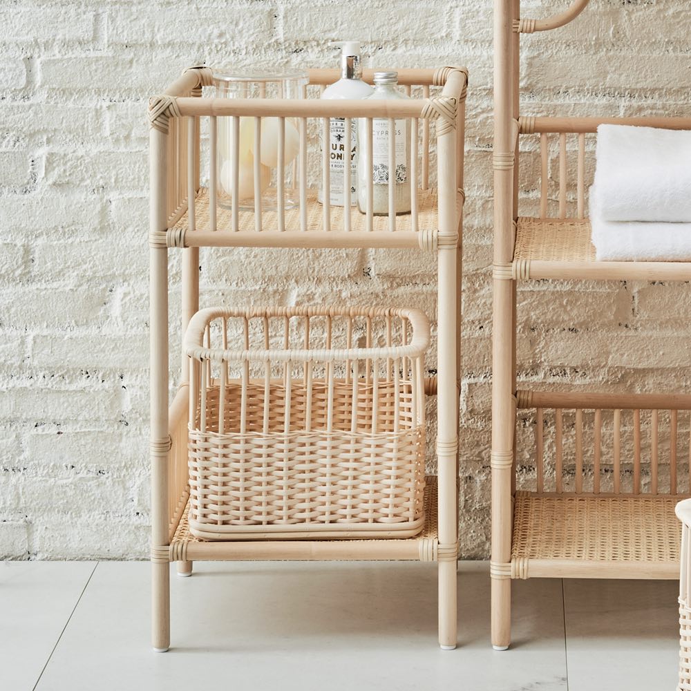 • ランドリーラックと付属のかごの底面は耐久性が高く、美しい職人による籐カゴメ編み