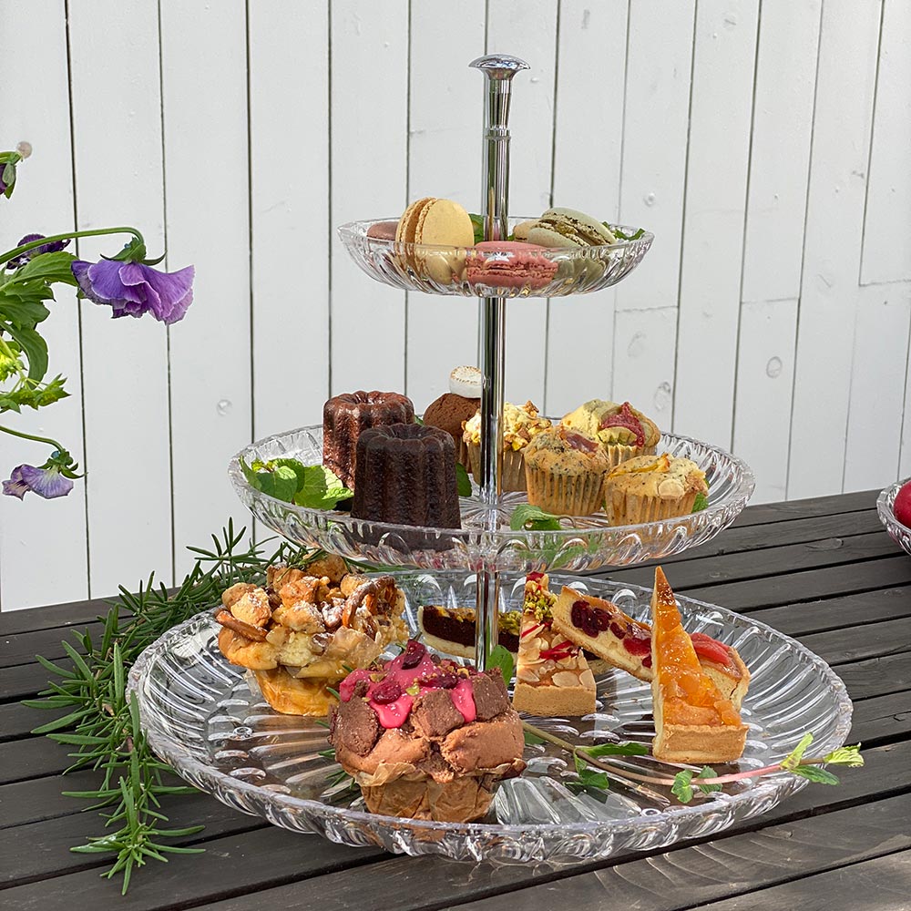 割れないシリーズのケーキスタンド。お料理やスイーツが映えます。おもてなしやアフタヌーンティーにオススメ。