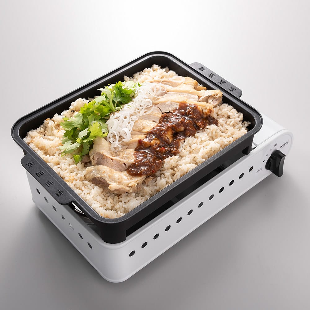 お米とチキンを一緒に炊き込むカオマンガイにも。テーブルの上で1品完成!
