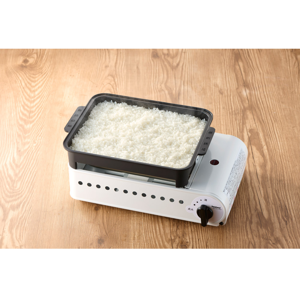 ふたの蒸気穴を菜箸などで塞いで炊飯できます。2合まで炊けて防災時にも活躍。