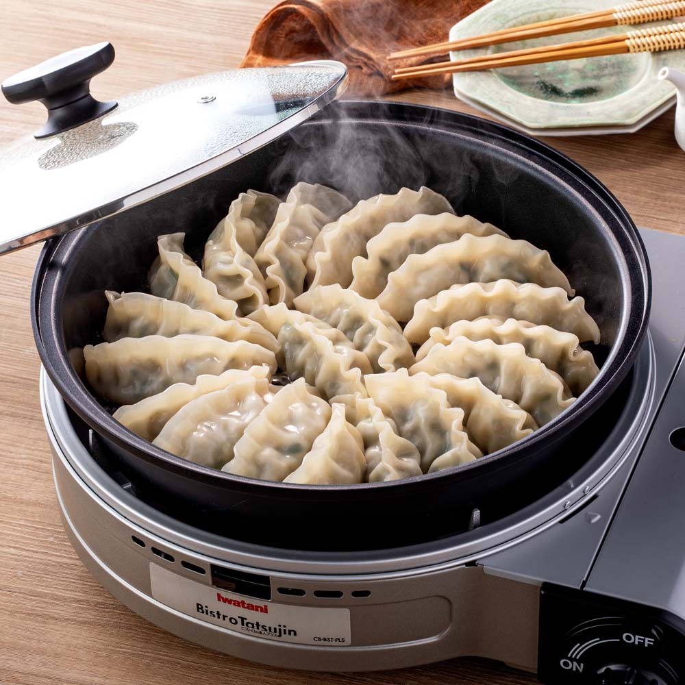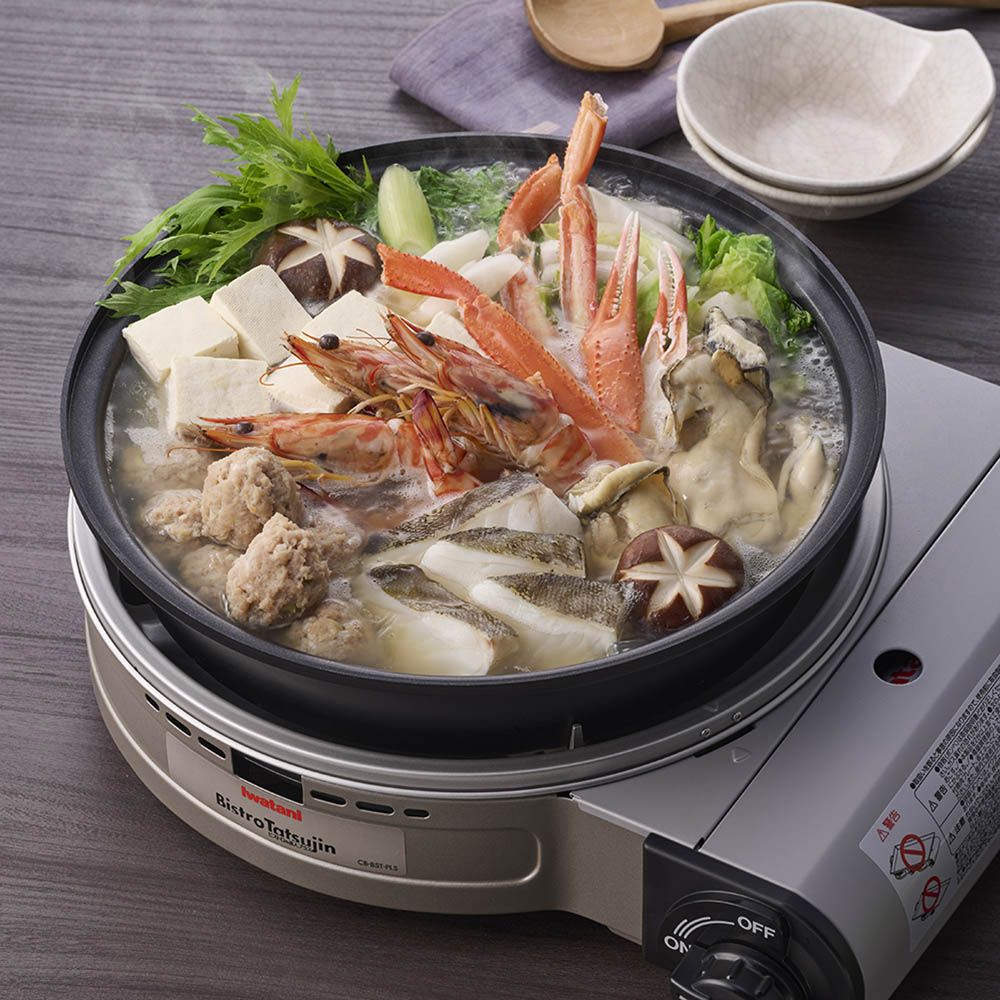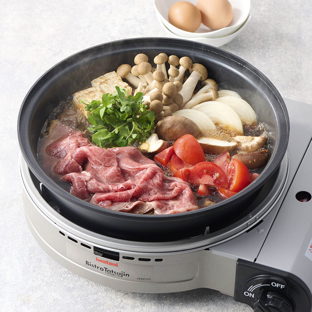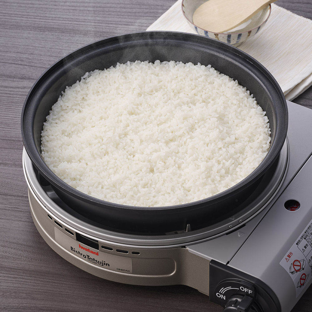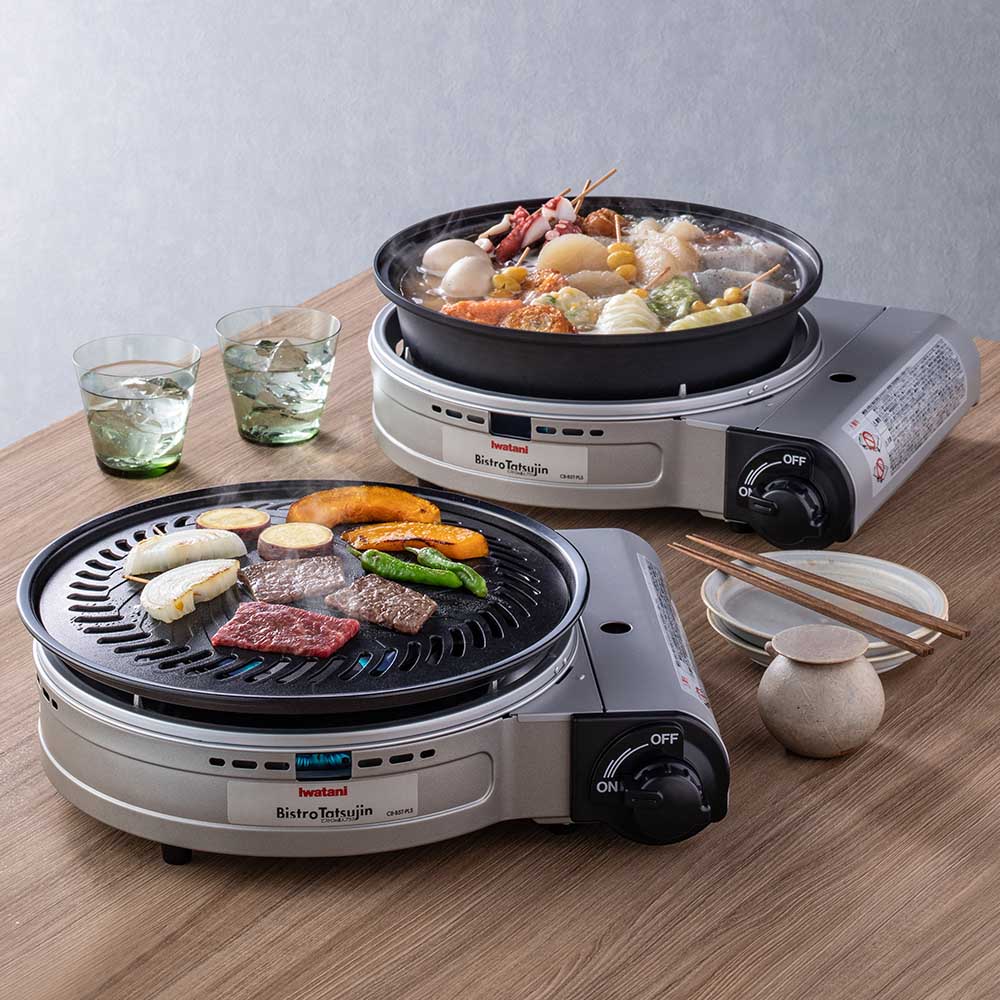 「ビストロの達人」がリニューアル。付属グリルプレートの深さが3cmから5.3cmと深くなって、おでんや鍋などの汁物が作りやすくなりました。土鍋の代わりにごはんを炊くのもお手のもの。直火で火力があるので焼肉やお好み焼き、餃子などもおいしく仕上がります。