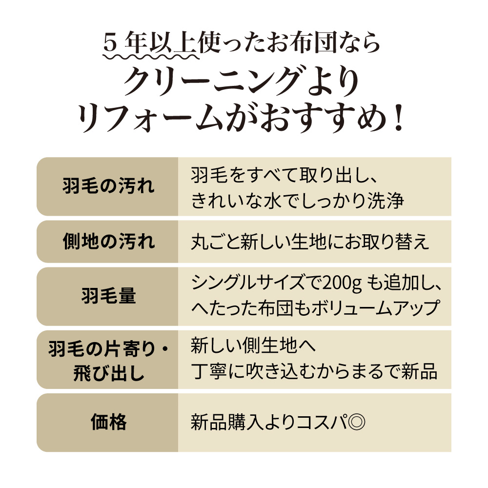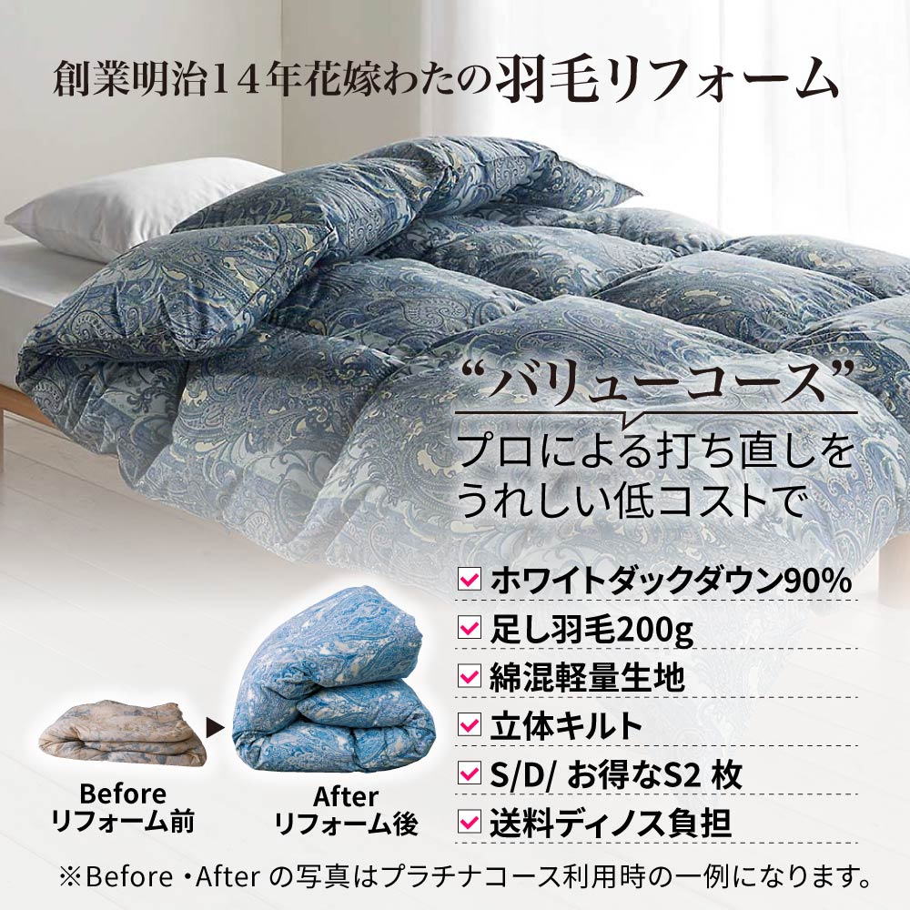 創業明治14年花嫁わた羽毛布団フルリフォームシリーズ バリューコース お得なシングル2枚組 布団クリーニング リフォーム 送料無料 647702