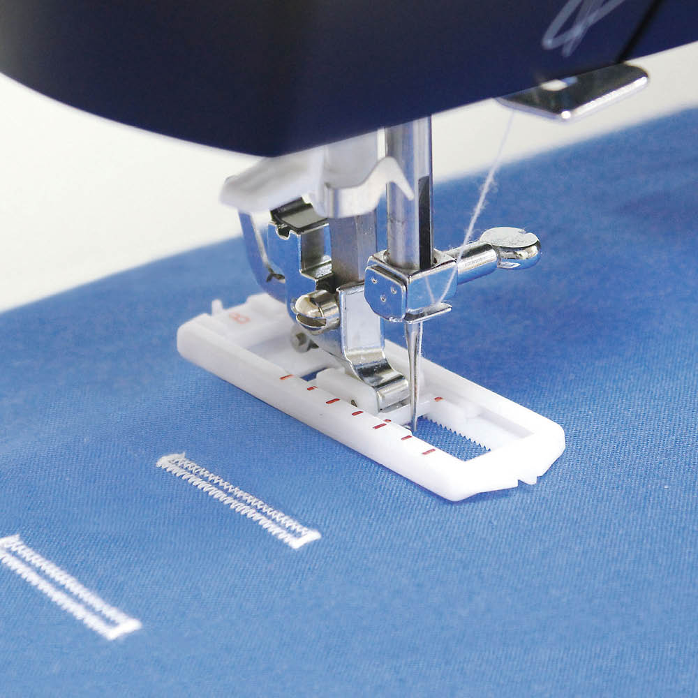 ダイヤルを回すだけで8種類14模様の縫い方を選べる、初心者にやさしい直感的な操作性が魅力です。誰でも簡単に使うことができるので、きっと創作意欲を刺激され、色々な作品にチャレンジしたくなるはずです。デニムの6枚重ねも難なく縫い進めるパワフルモーターを搭載