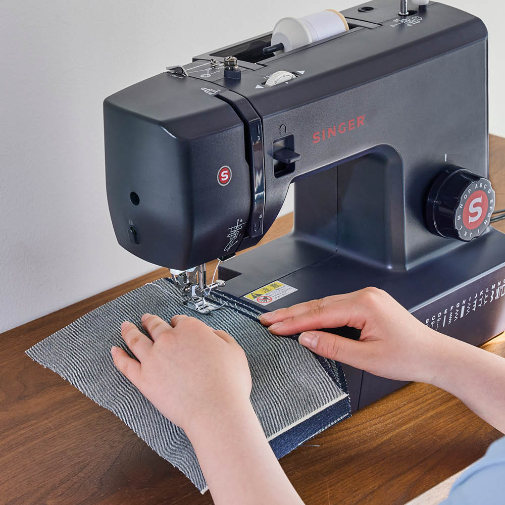 生地が重なるポケット部分もぐんぐん縫えて、修繕やリメイクにも活躍。普段のちょっとした縫い物はもちろん、お気に入りの服を長く使いたい方にとっても頼れる一台です。面倒な針穴糸通しもレバーひとつで針に糸が通せる優れものです