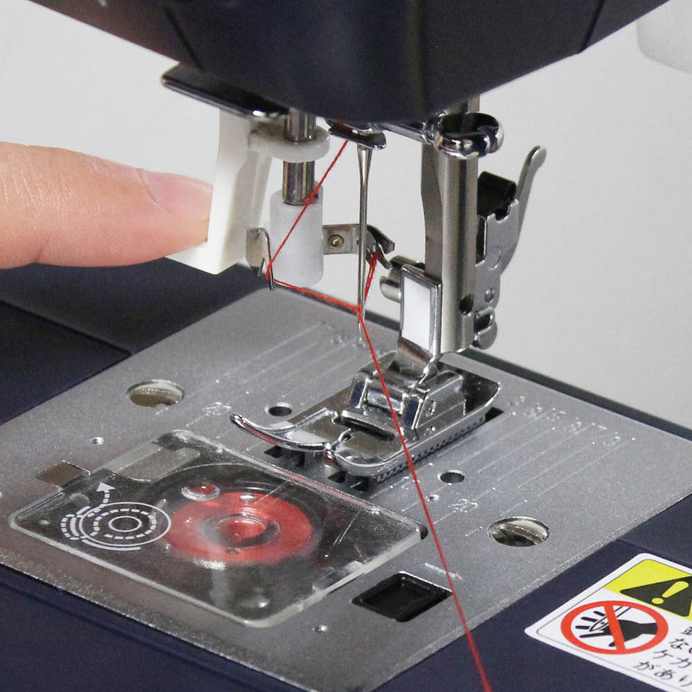 面倒な針穴糸通しもレバーひとつで針に糸が通せる優れものです