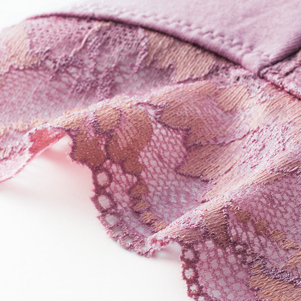 ブラと同じハイストレッチレースをふんだんに使用。光沢のあるレースで華やかデザイン。 (エ)ローズ
