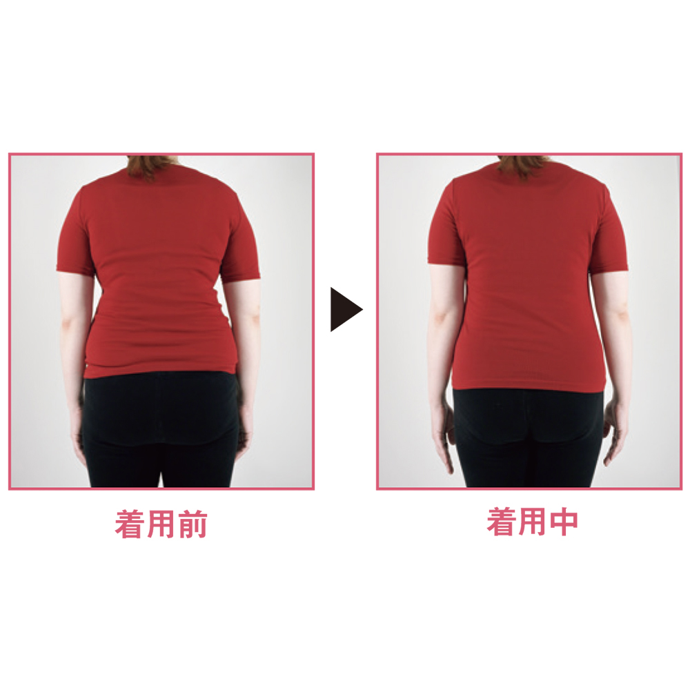 クロス状に配したパワーネットでお腹をすっきりと抑え、はくと骨盤位置まで整えます。 (エ)ローズ