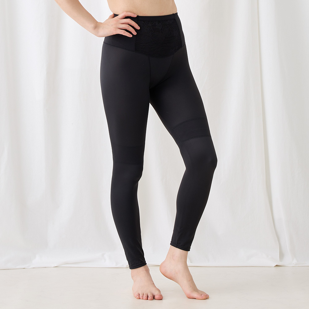 人気の骨盤底筋ガードルに膝サポート機能を追加した、トリプルサポートが叶うレギンス。特にこだわったのは、負担を軽減し安定した歩行をサポートする膝の二重パワーネット。年齢とともに不安になる腰や膝の不調をサポートして、元気で若々しい毎日を楽しみましょう。