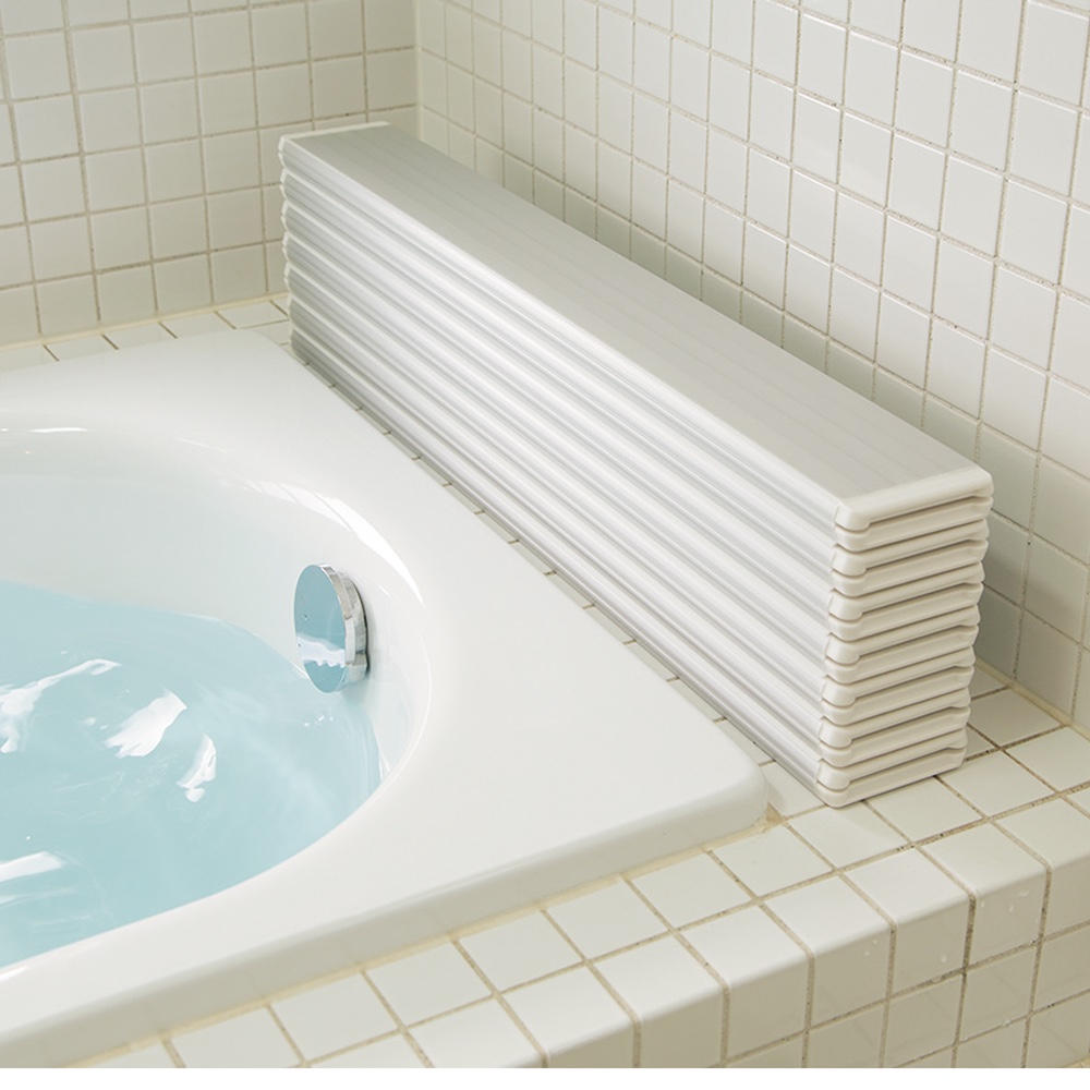 入浴時も浴槽脇にスリムにおける折り畳み式。圧迫感がなく、広々と入浴できると人気の形状です。縁にはくぼみがあり、持ち上げやすく、折り畳みやすさにもこだわりました。
